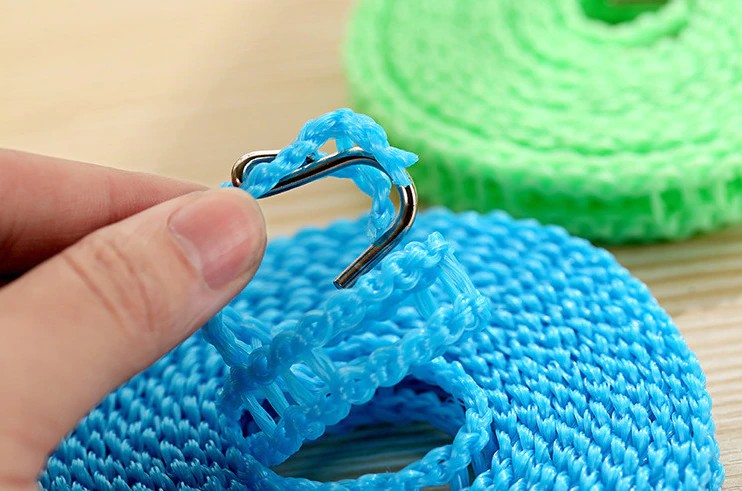 这种坚固的防风晾衣绳可以使衣服晾干.
