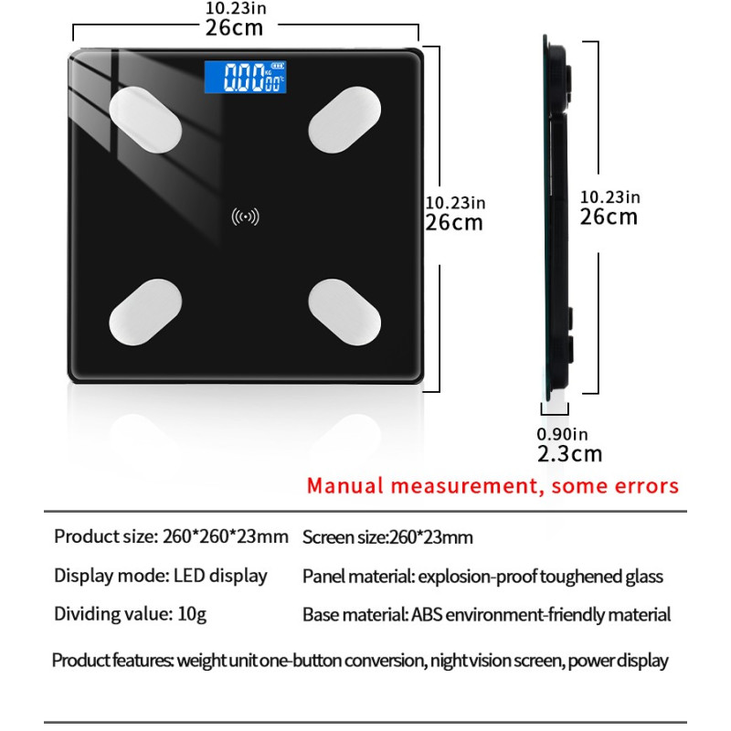 High-präzision chip BIA ermöglicht sie zu messen 13 verschiedene parameter von ihren körper, einschließlich gewicht, BMI, prozentsatz von fett in die körper, muskelmasse, wasser inhalt, protein inhalt,.