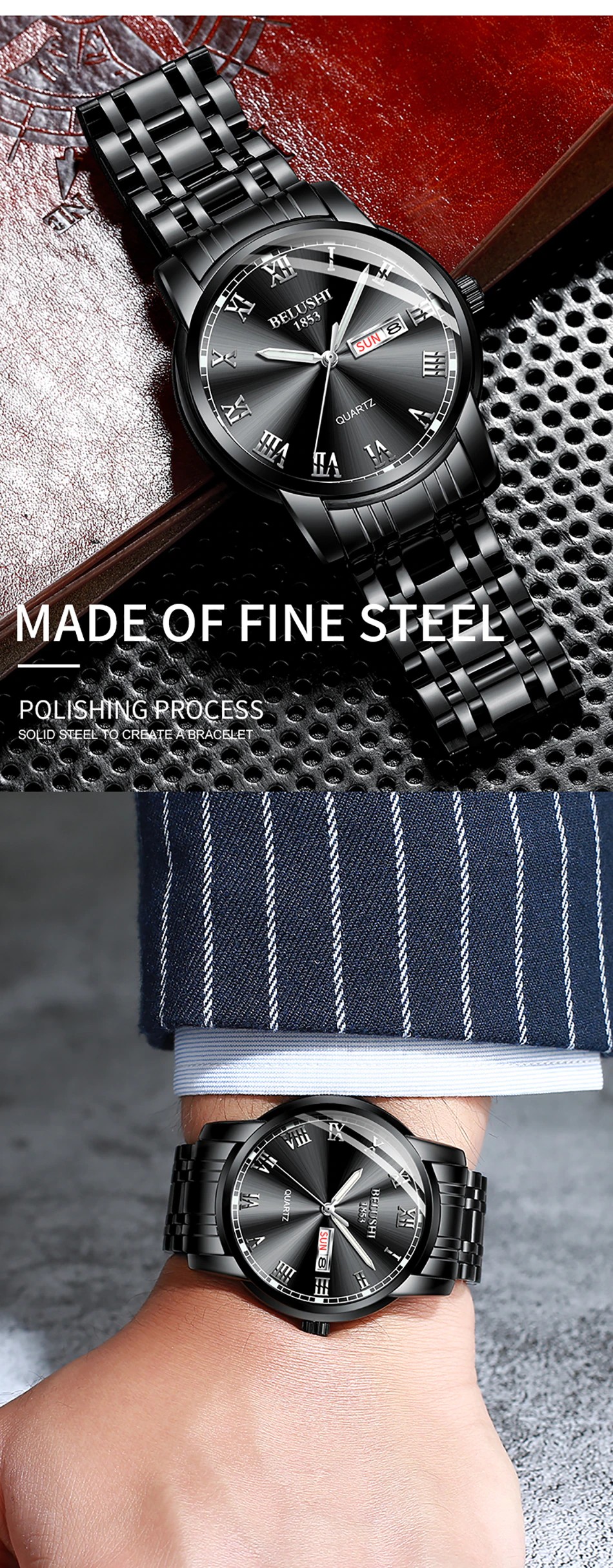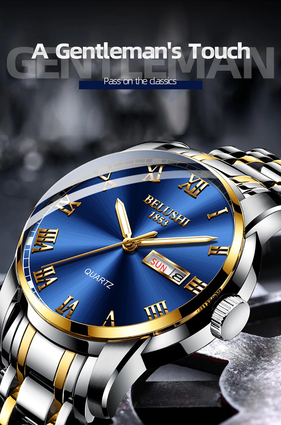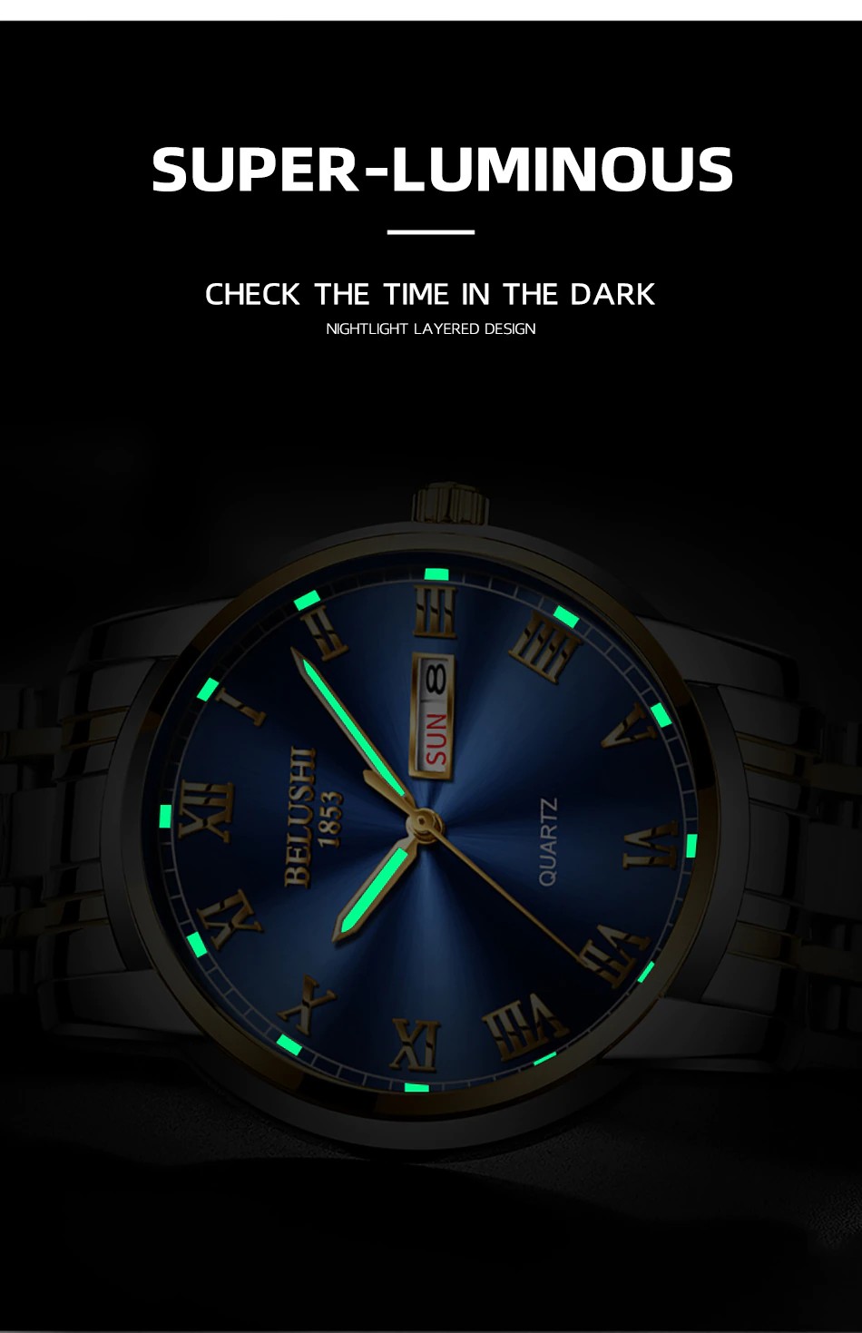 Belushi Top Marke Uhr Männer Edelstahl Business Datum Uhr Wasserdicht Leuchtende Uhren Herren Luxus Sport Quarz Armbanduhr