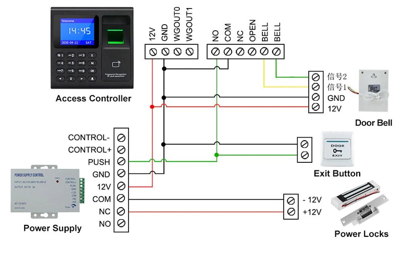 10) hat Wiegand26/34 eingang/ausgang, relais ausgang, tür glocke taste.