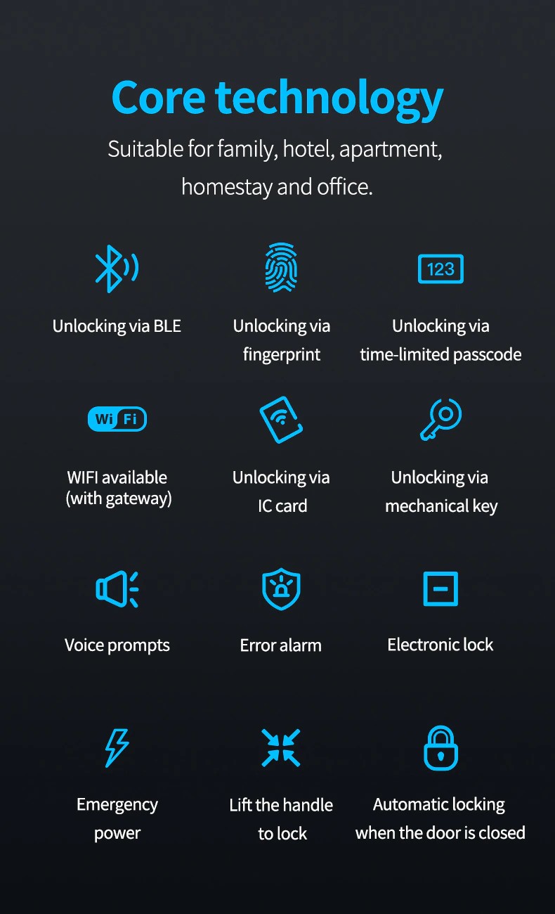Entsperren methode: wifi App, M1 Karte, Pass code, Fingerprint, Armband oder schlüssel