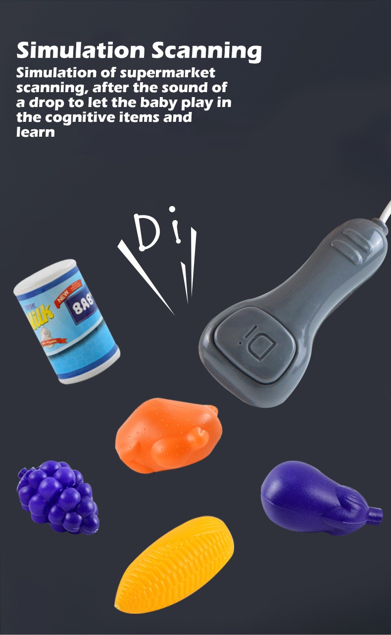 8888a-3: cash register mit kühlschrank + essen (cash register mit berechnung, scannen und sound funktionen)