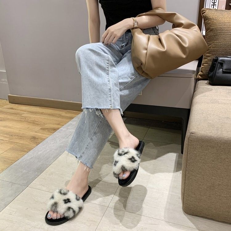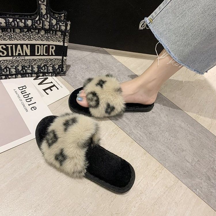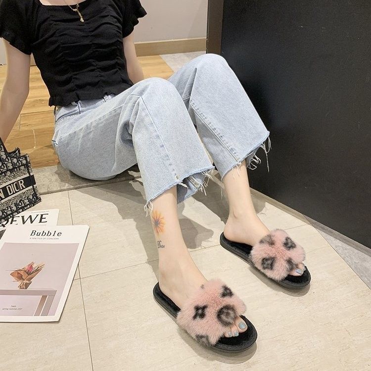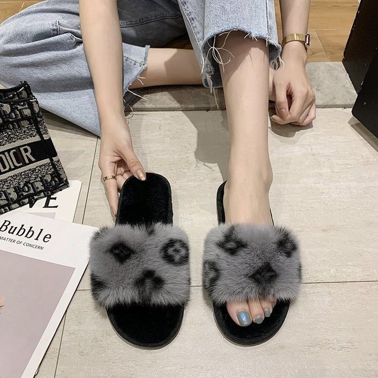 Baumwolle Hausschuhe Neueste Herbst Und Winter Neue Koreanische Version Der Net Rot Druck Wort Flachen Boden Casual Haarigen Hausschuhe Frauen