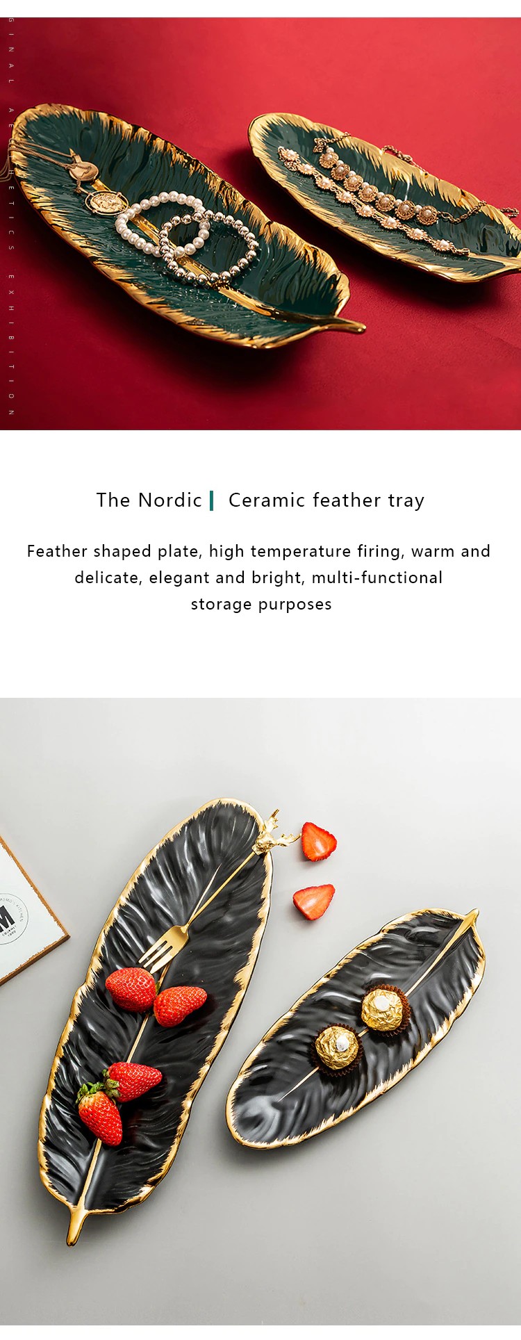 Kreative Luxus Feder Ablage Keramik Obst Kuchen Dessert Geschirr Dish Organizer Schmuck Dekorative Tablett Set