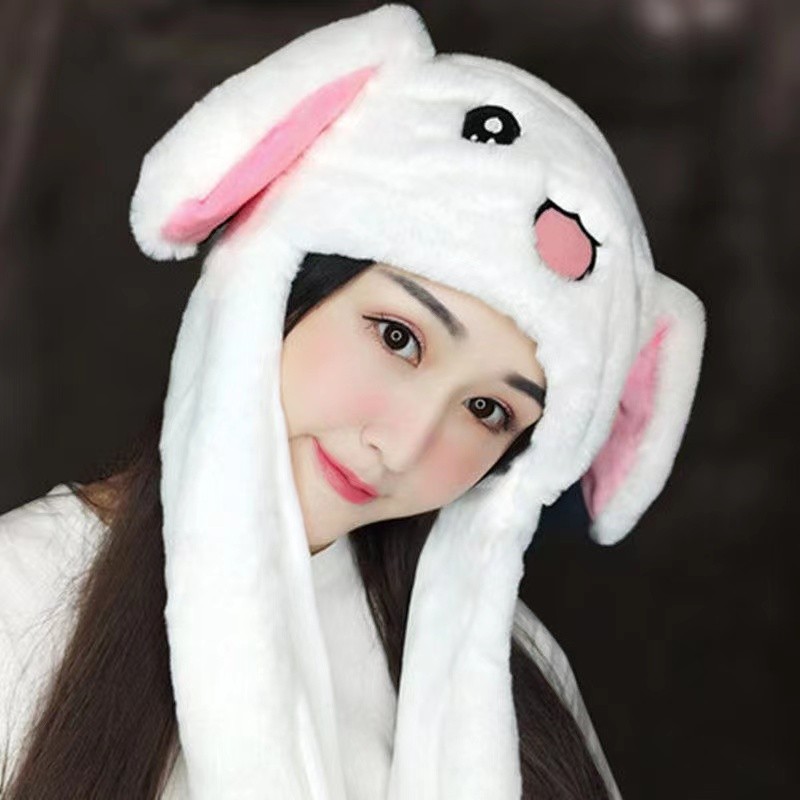 Cute Bunny Ohren Hut Moving Airbag Kaninchen Weichen Springen Up Cap Lustige Spielzeug Mädchen Cartoon Kawaii Plüsch Hut Spielzeug Geschenk Für Erwachsene Kinder