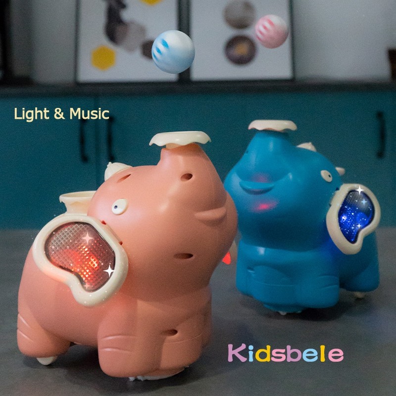 ·Schalter zu 2 getriebe, die elefanten wird begann moving, es wird auto ändern richtung wenn es hindernis treffen. Und die elefanten"S nase hält auf blasen luft in der zwischenzeit, halten den ball nicht auf den boden fallen. Kinder liebe moving spielzeug!