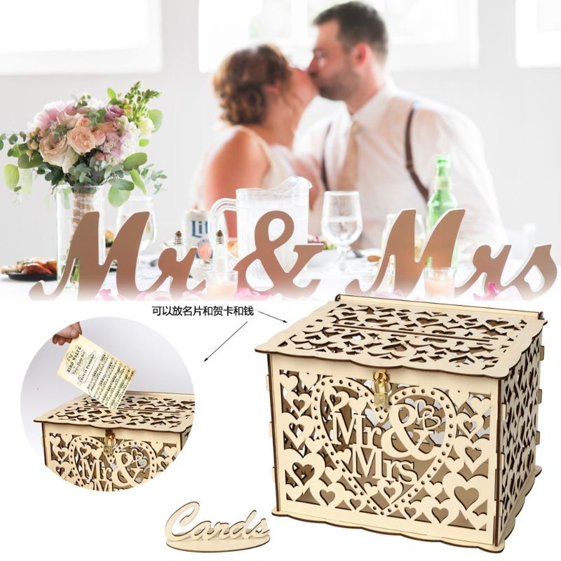 Diy Hochzeit Geschenk Mr &Amp; Mrs Holz Karte Geld Box Fall Mit Schloss Rustikalen Schöne Party Favor Dekoration Geburtstag Lieferungen