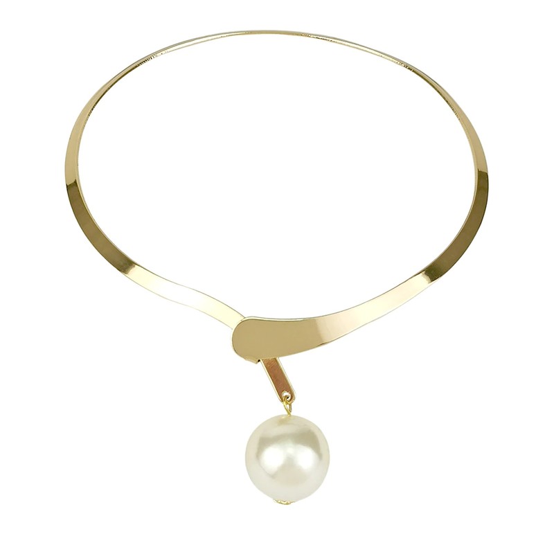 Elegante Einfache Wasser-Welle Perle Halskette Für Frauen Charming Big Metall Geometrische Erklärung Kragen Halskette Schmuck Zubehör