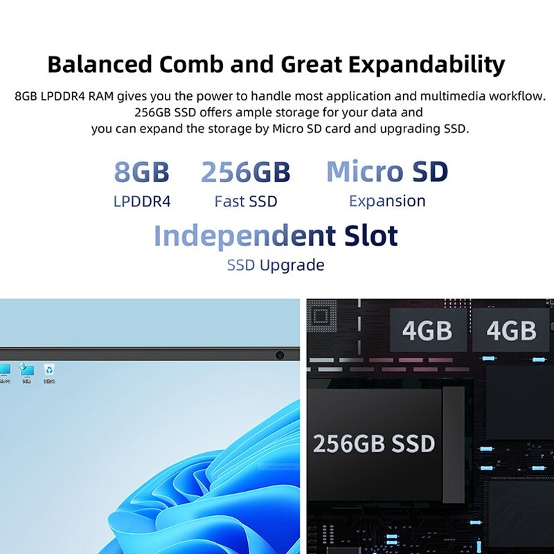 256GB SSD bietet viel stauraum für ihre daten und sie können erweitern die lagerung durch Micro SD karte und upgrade SSD.