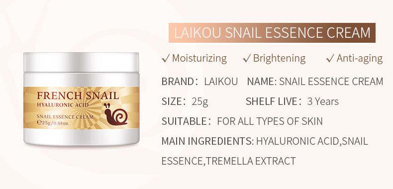 ① Diese Französisch Schnecke Essenz creme ist reiche in schnecke essenz, hyaluronsäure und tremella extrakt. Es können befeuchten die trockene haut, reparatur beschädigt haut und verbessern die elastizität der haut. es können slove die haut probleme wie raue haut, stumpfe haut und feine linien. Längere verwendung kann pemannently matain die jugendlichen zustand der haut.