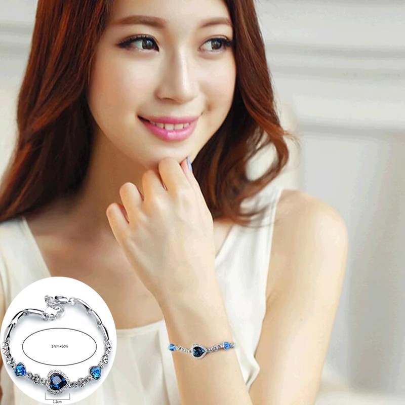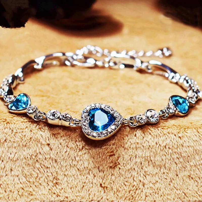 Famshin Heißesten Frauen Damen Kristall Strass Armreif Ozean Blau Armband Kette Herz Schmuck Party Geschenke