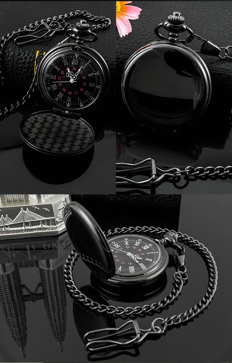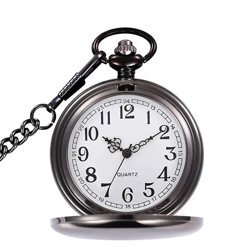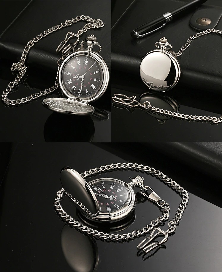 Mode 37Cm Fob Kette Glatte Stahl Quarz Taschenuhr Vintage Römischen Nmber Zifferblatt Anhänger Fob Uhr Geschenke Uhr