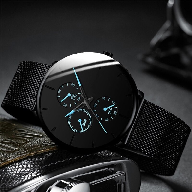 Mode Herren Business Schwarz Uhren Luxus Edelstahl Ultra Dünne Mesh Gürtel Quarz Männer Armbanduhr Casual Klassische Männliche Uhr