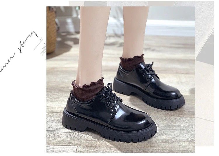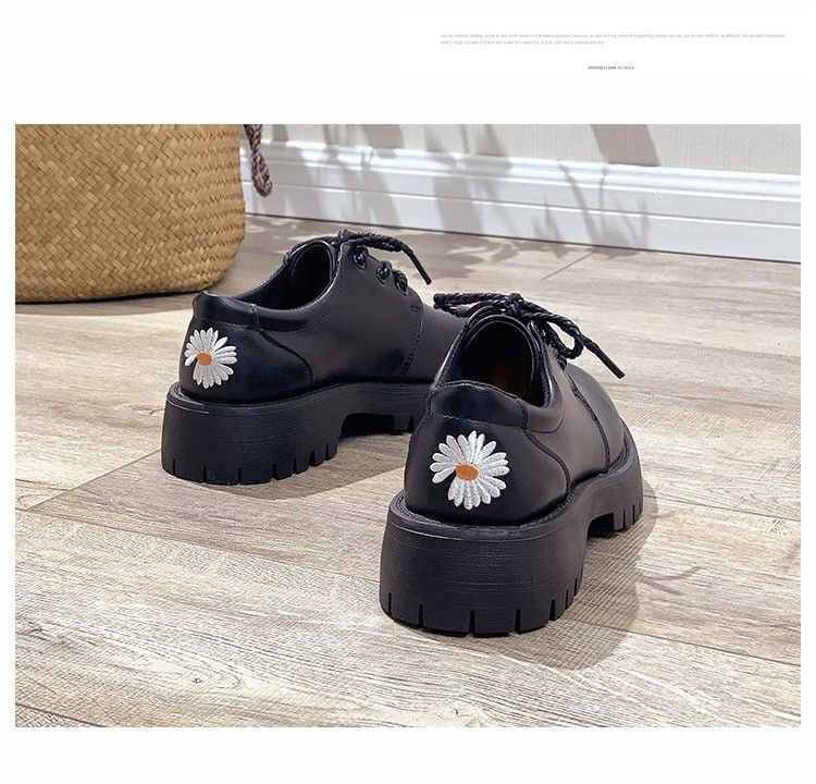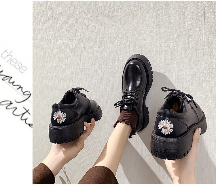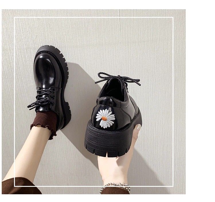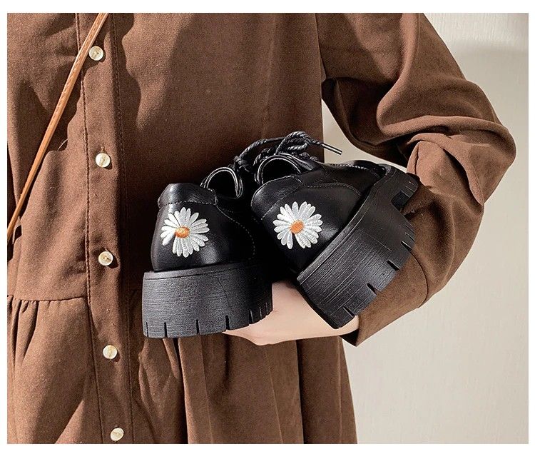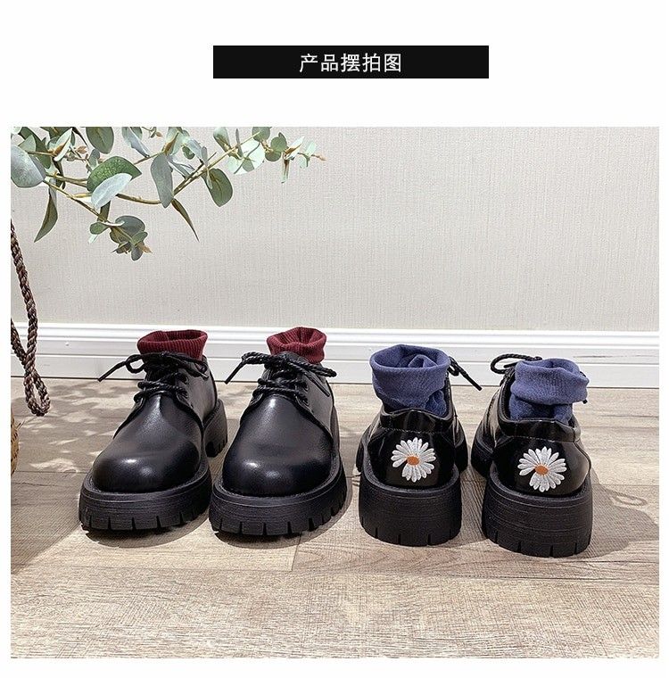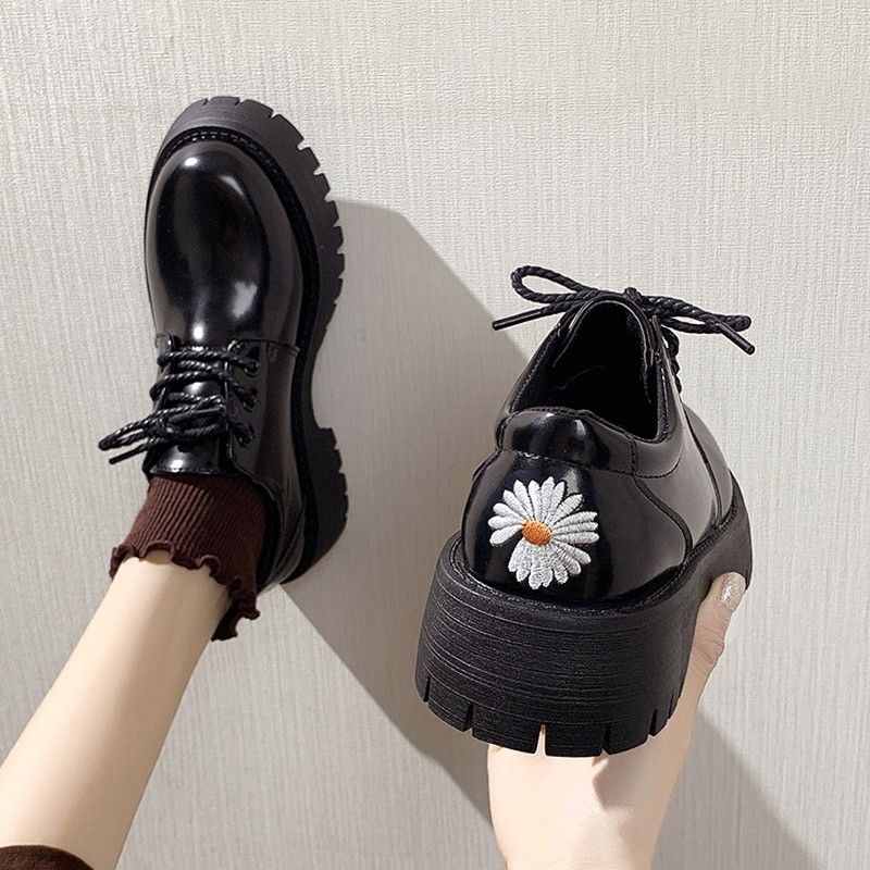 Blume Sticken Lackierten Ledernen Schuhe Frau Lace Up Runde Toe Derby Schuhe Große Kappe Britischen Creepers Brogure Wohnungen Für Frauen