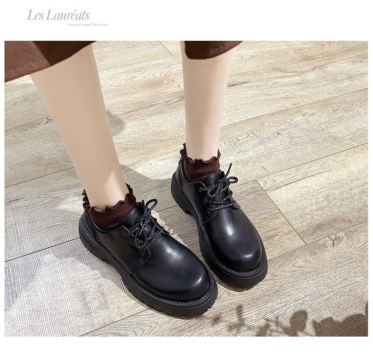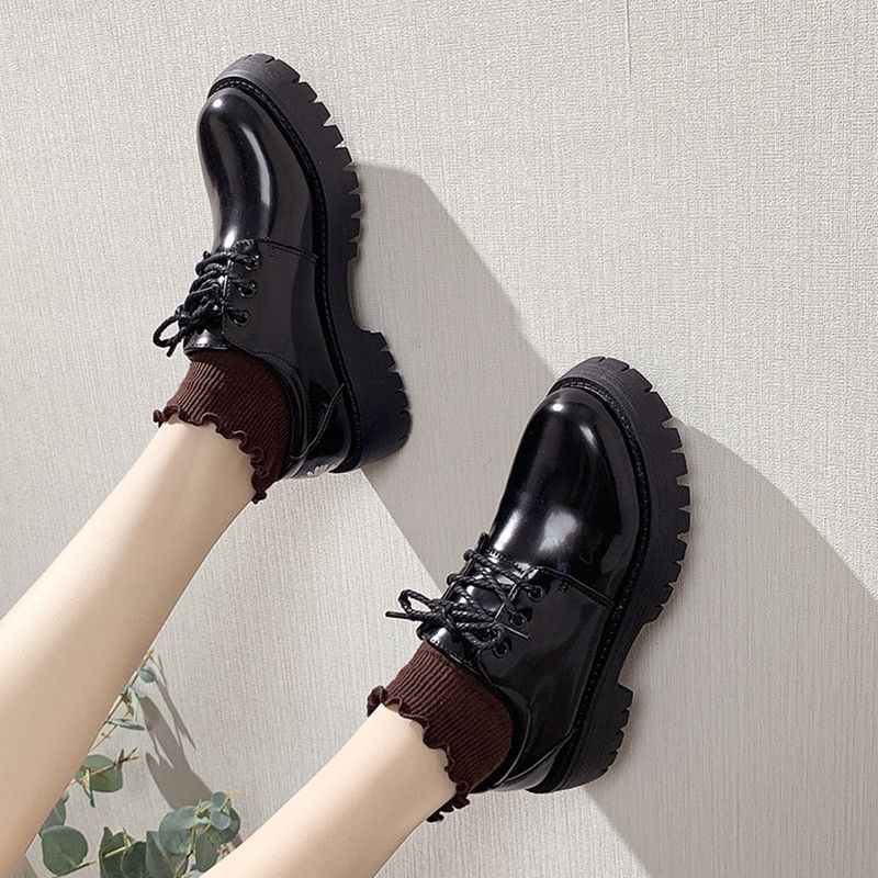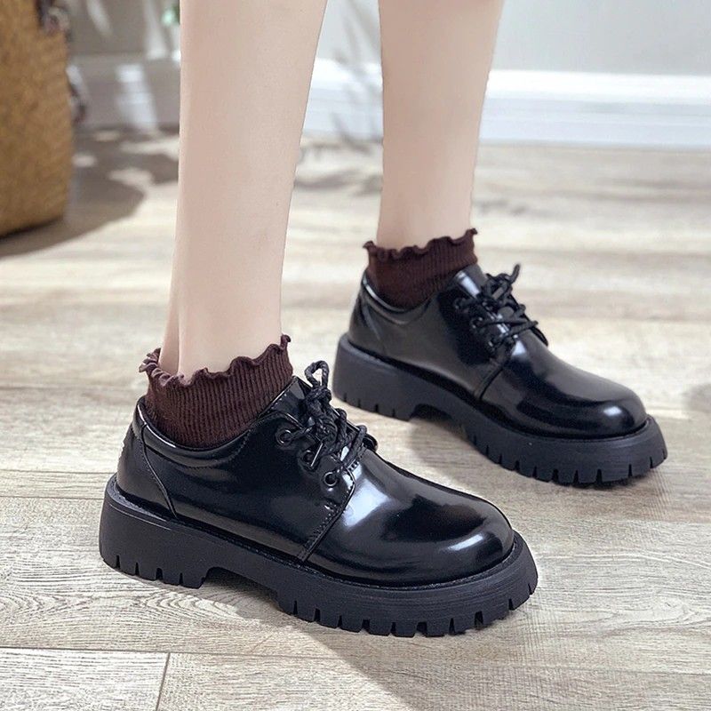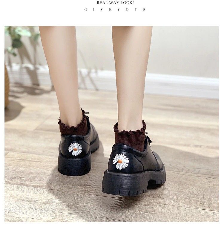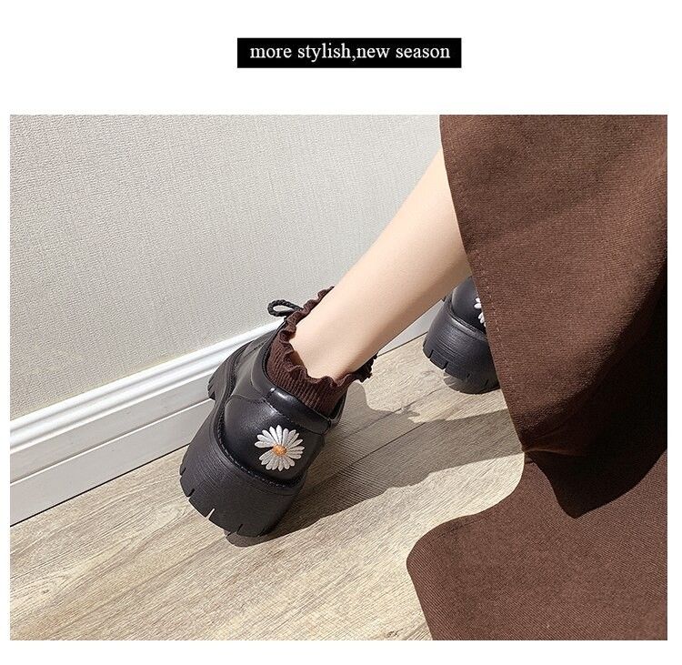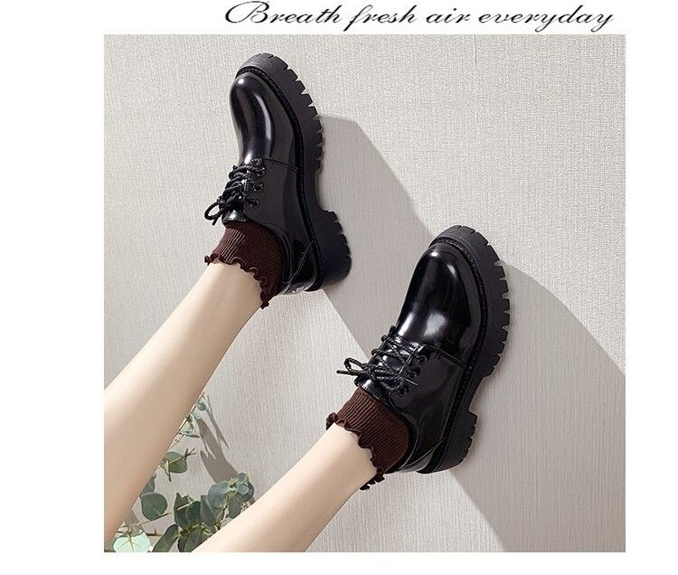 Blume Sticken Lackierten Ledernen Schuhe Frau Lace Up Runde Toe Derby Schuhe Große Kappe Britischen Creepers Brogure Wohnungen Für Frauen