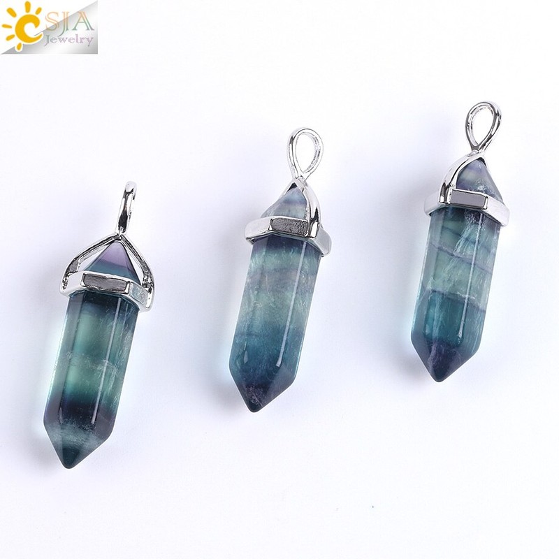 Csja Fluorit Halsketten Kristall Anhänger Suspension Natürliche Edelstein Stein Quarz Kugel Hexagonal Pendel Reiki Chakra Pendulo E546