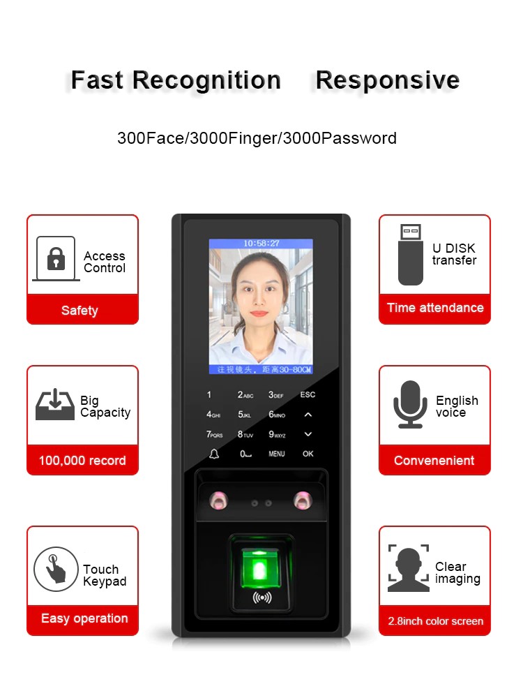 Speichert300 gesicht, 3,000 vorlagenFinger, 3,000 passwort und100,000 transaktionen