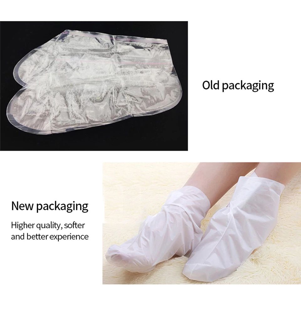 3. nach dem aufsetzen auf die fuß maske, es ist empfohlen, tragen ein paar lange socken außerhalb zu ensurefull kontaktieren zwischen die essenz und die haut.