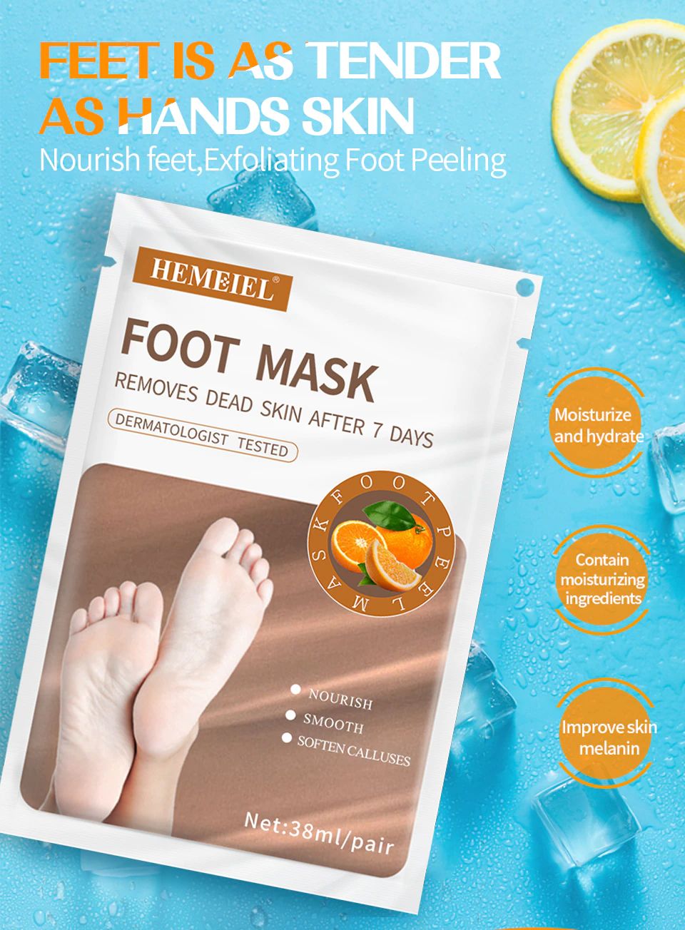 HEMEIEL Vitamin C Fuß Maske Peel Feuchtigkeitsspendende Entfernung Schwielen Riss Ferse Socke Für Pediküre Fuß Spa Peeling 1 Paar = 2PCs