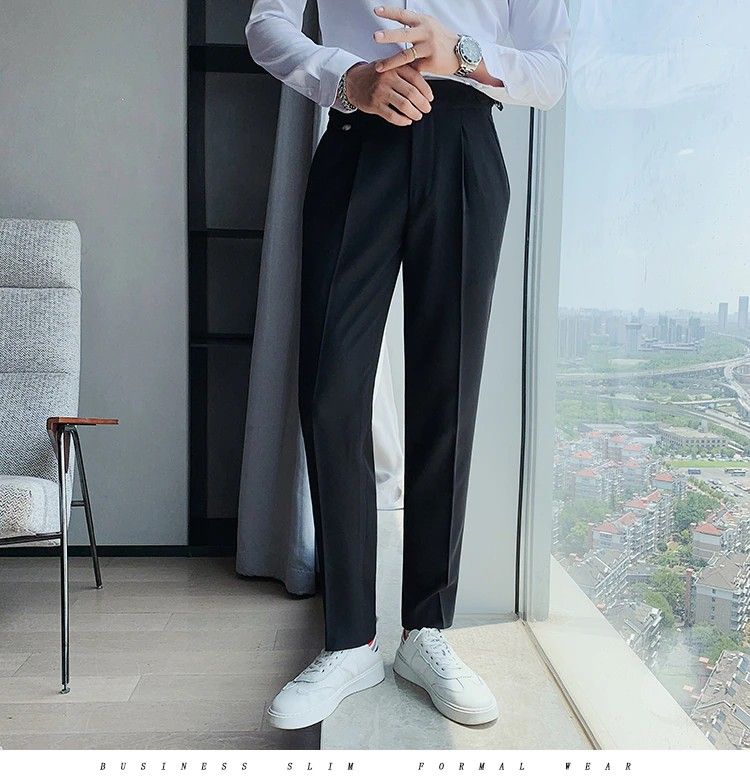 Hohe Qualität Britischen Stil Business Casual Slim Fit Männer Kleid Hosen Feste Alle Spiel Formale Tragen Büro Hosen Herren 36-29