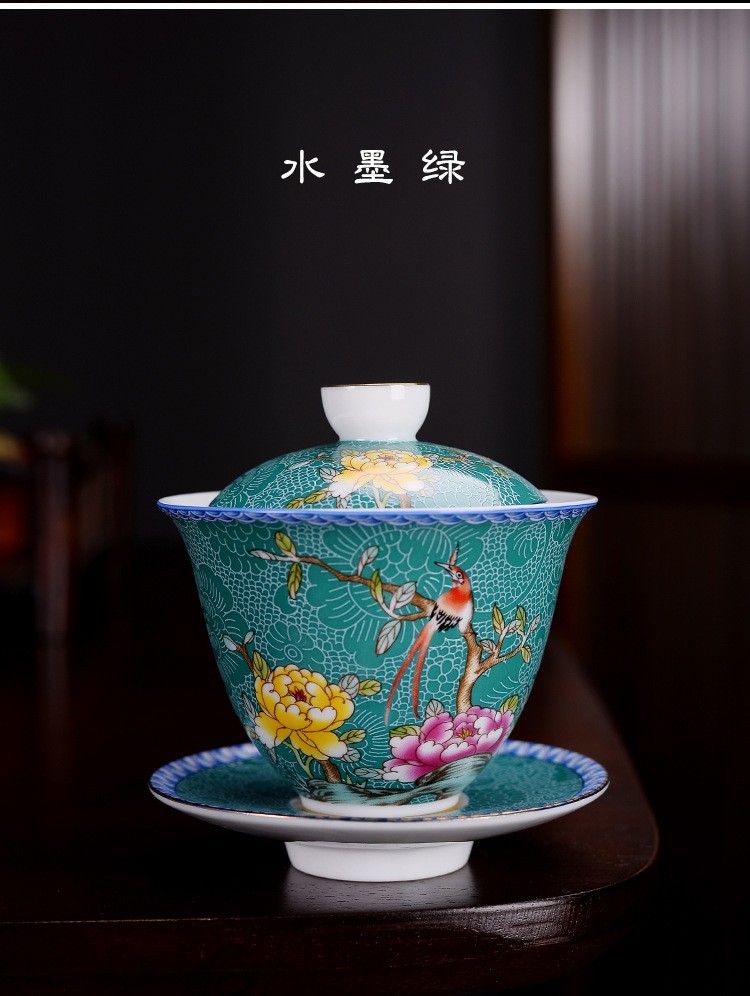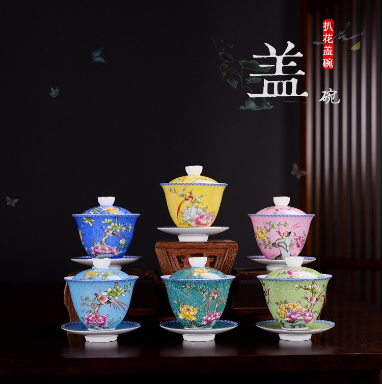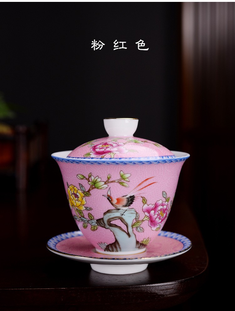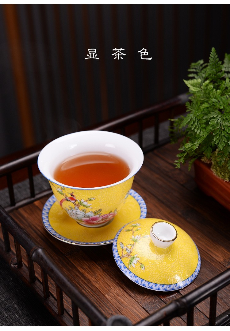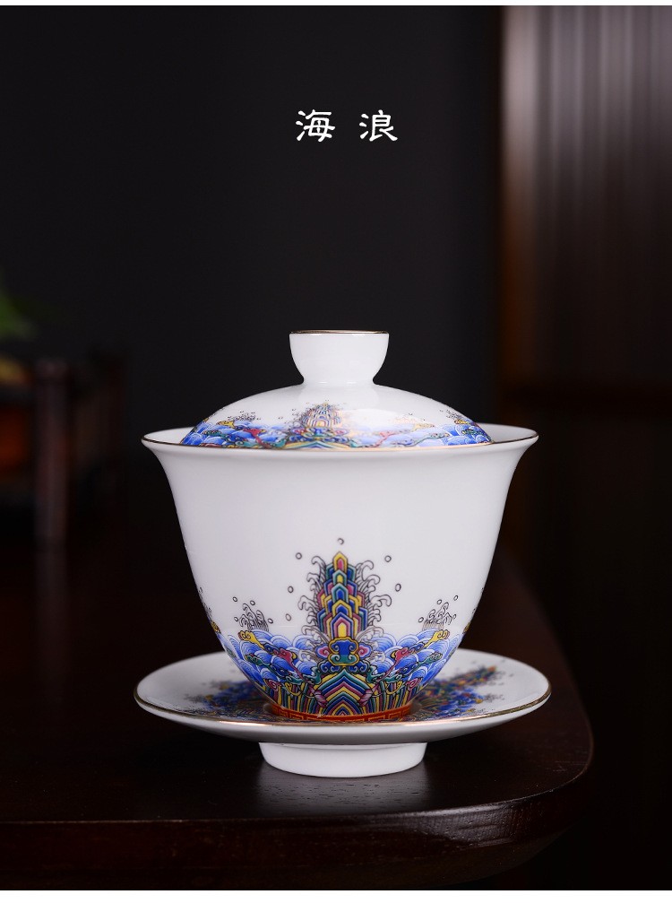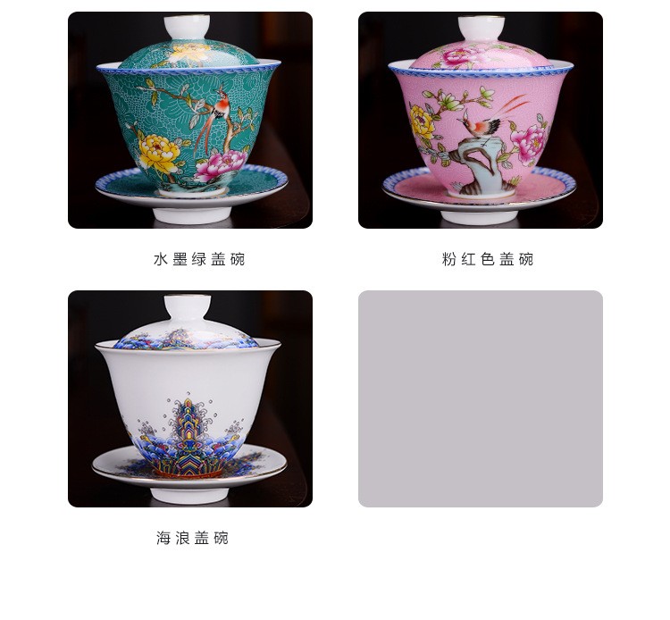 Hmlove Farbe Emaille Sancai Gaiwan Weiß Porzellan Abdeckung Schüssel Deckel Untertasse Kung Fu Tee-Sets Handgemachte Terrine Reise Teegeschirr Geschenk