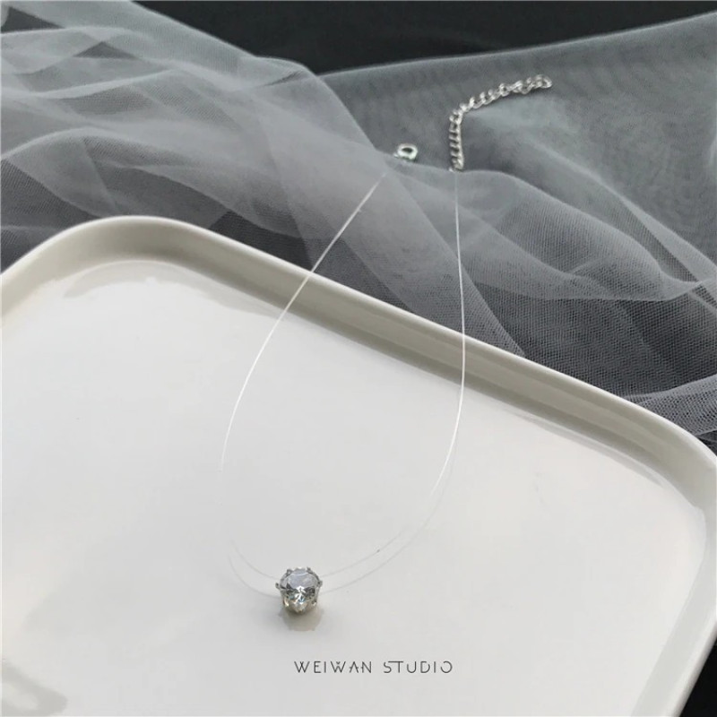 Heißer Verkauf Fashion Square Imitation Perle Kristall Zirkon Power Halsketten Invisible Transparent Angelschnur Halskette Frauen