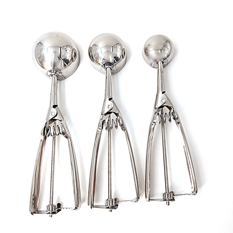 Eis Scoop Küche Werkzeuge 3 Größe Edelstahl Frühling Griff Maische Kartoffel Wassermelone Ball Scoop Home Küche Zubehör