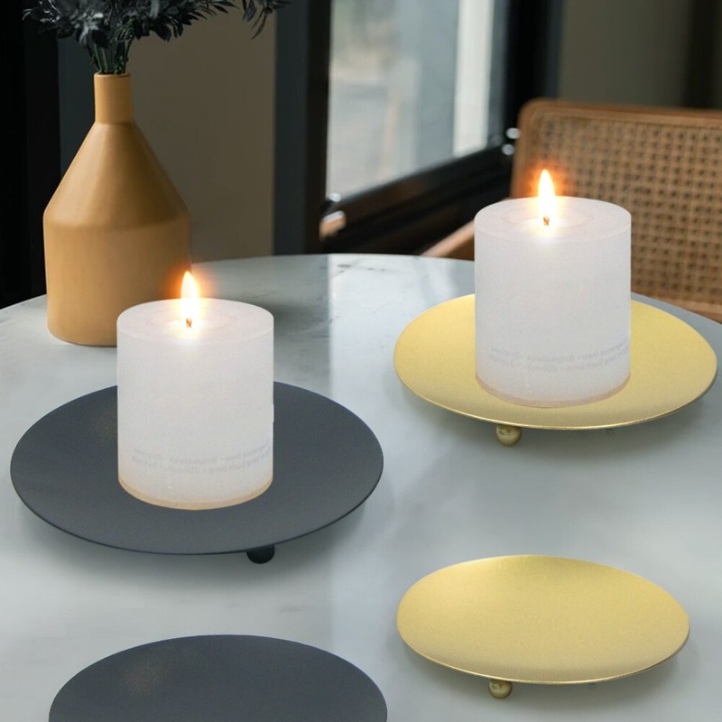 Eisen Schwarz Gold Überzogene Kerzenhalter Säule Metall Platte Für Hochzeit Party Festival Leuchter Halter Kunst Geschenk Hause Dekoration
