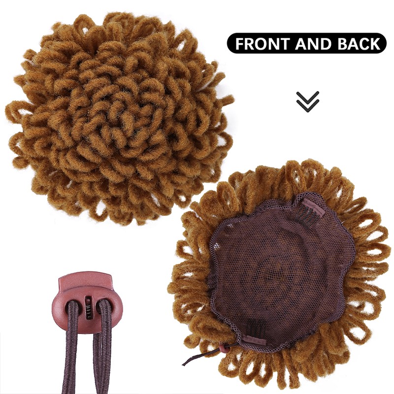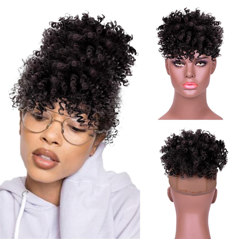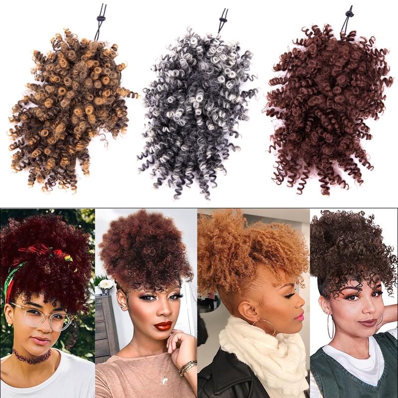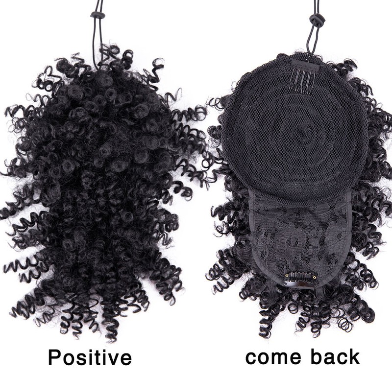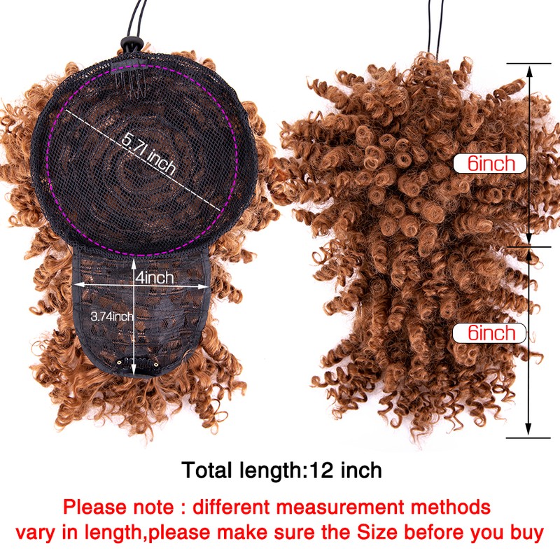1.Material: synthetische faser afro verworrene lockige haar brötchen mit lockige pony, 12 zoll afro lockige pony, wenn sie empfangen es, bitte schütteln und kamm es, es werden flauschigen und schöne.