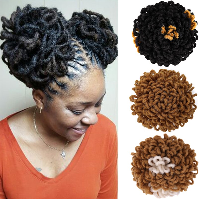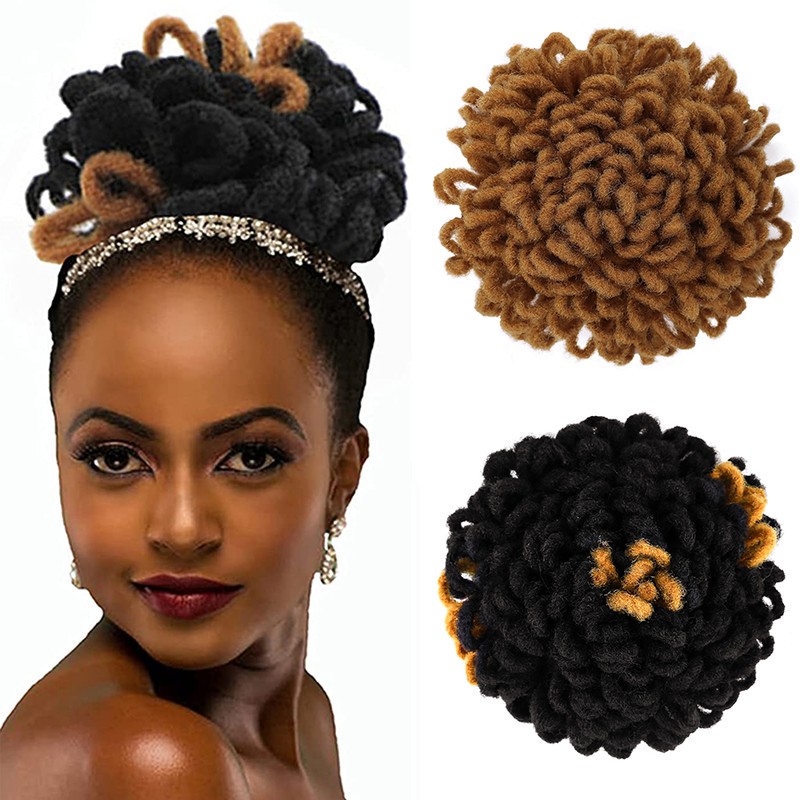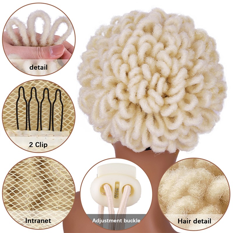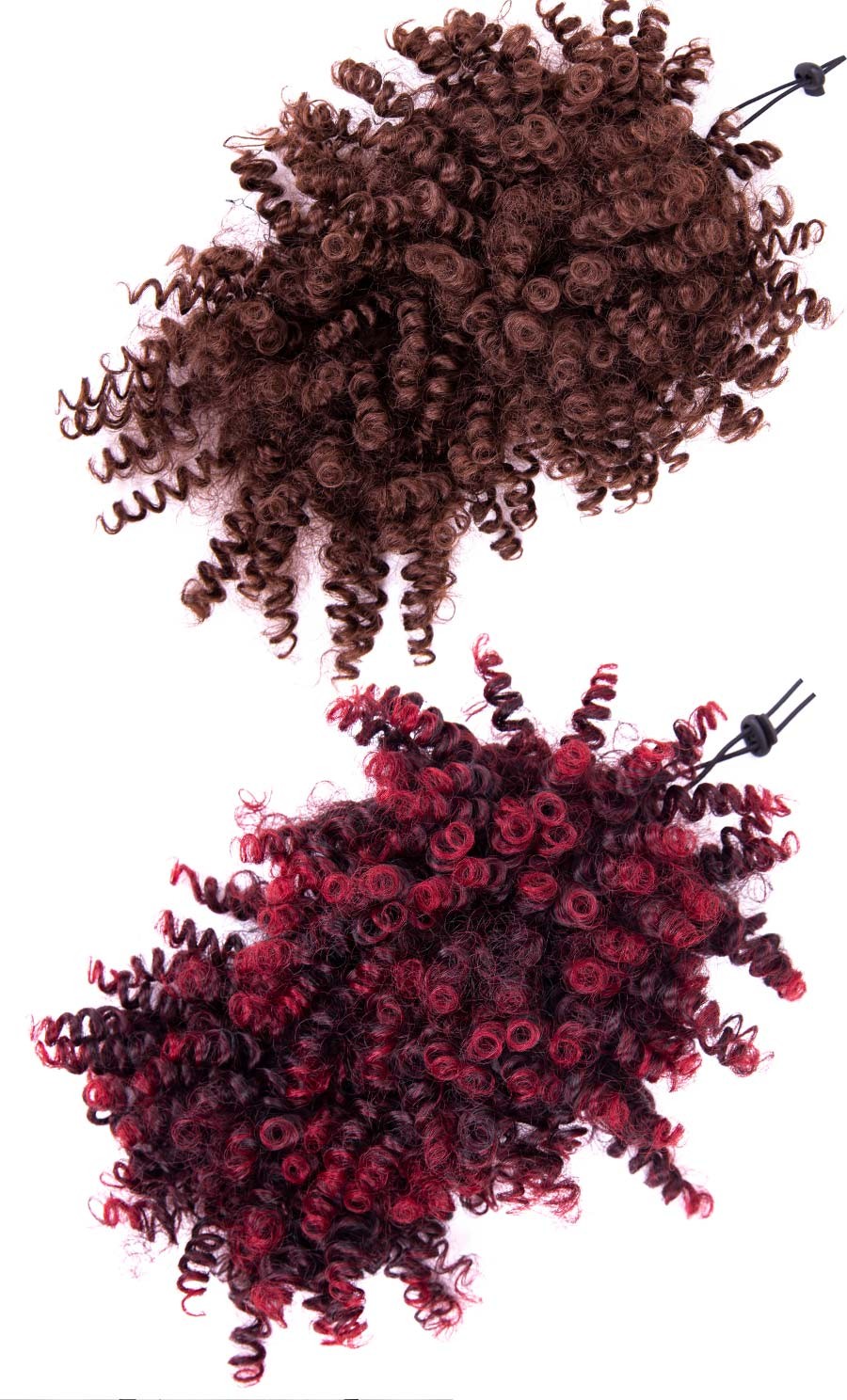 1.Material: synthetische faser afro verworrene lockige haar brötchen mit lockige pony, 12 zoll afro lockige pony, wenn sie empfangen es, bitte schütteln und kamm es, es werden flauschigen und schöne.