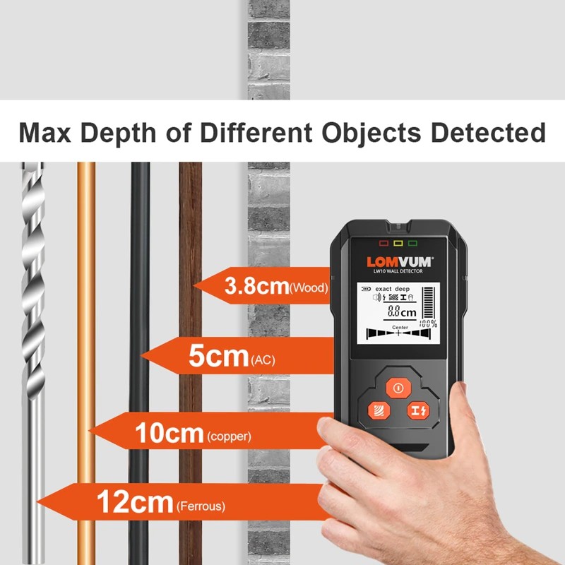 Lomvum Metall Detektor Backlit Schwarz Ac Holz Stud Finder Kabel Drähte Tiefe Tracker Undeground Sturs Wand Scanner Lcd Hd Display