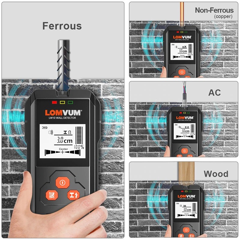 Sie können erkennen die AC live drähte, kupfer, holz, metall unterirdischen und in der wand durch lomvum Metall detektor.