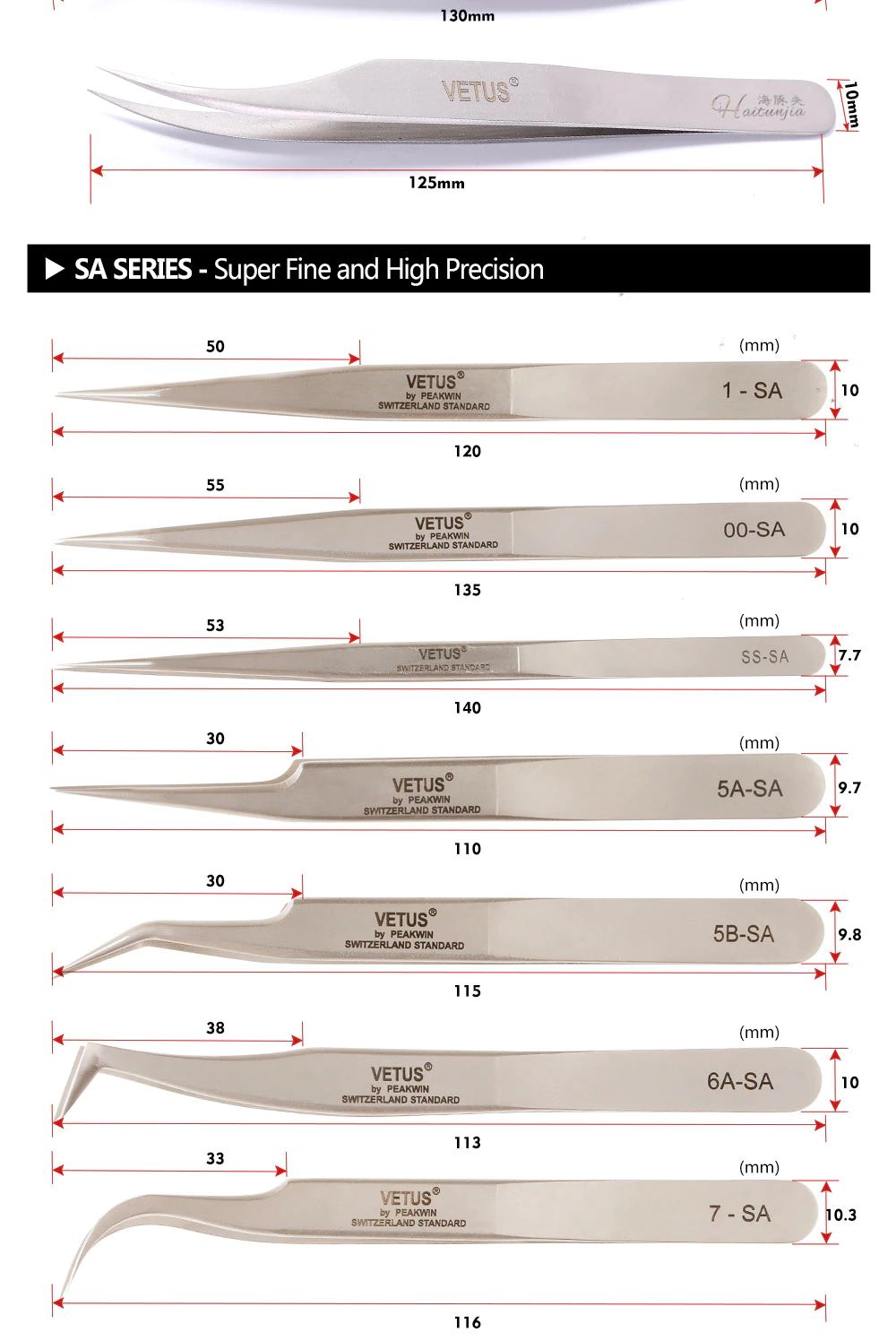 Vetus pinzette haben einige eigenschaften: ultra präzise, hohe genauigkeit, anti-magnetische, anti-säure, superharten aber elastische