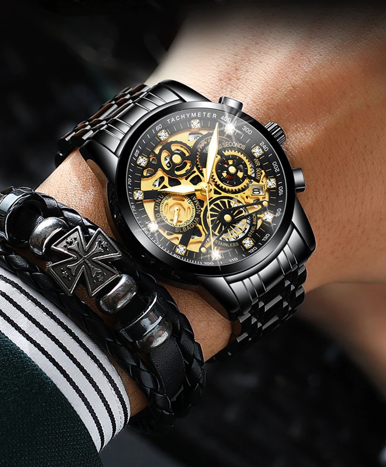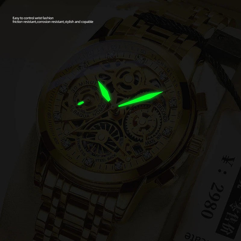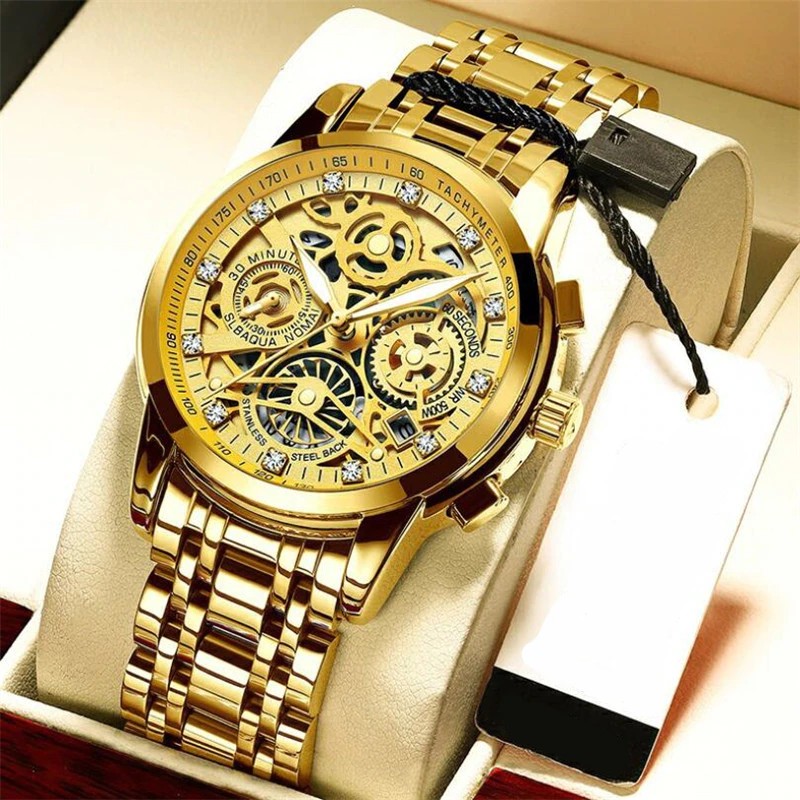 Männer Uhren Tourbillon Rotierenden Fenster Top Luxus Marke Mode Quarz Männer Uhr Wasserdicht Gold Stahl Business Armbanduhr