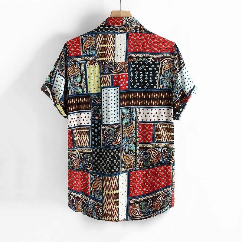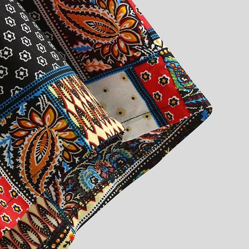 Mens Vintage Ethnischen Stil Druck Lose Kurzarm Stehkragen Casual Hemd Tägliche Tragen Hohe Qualität Büro Big Bluse