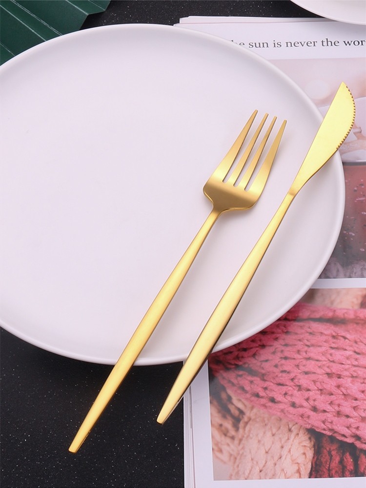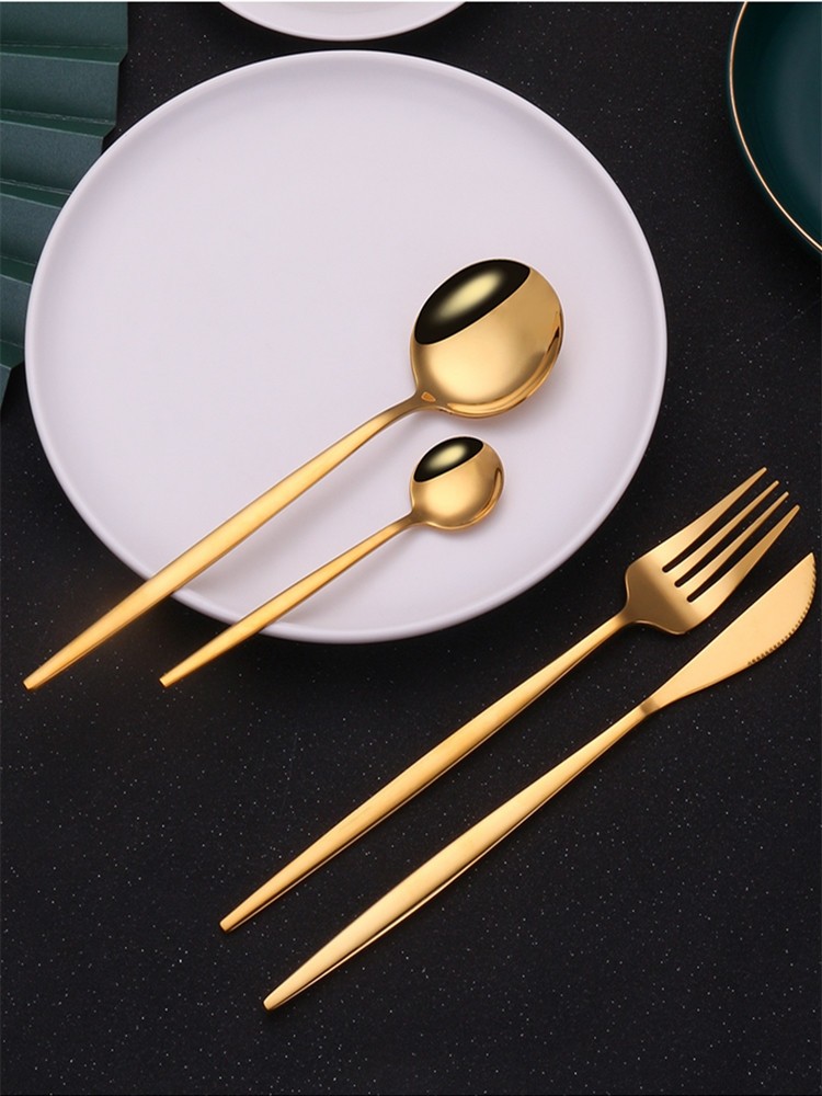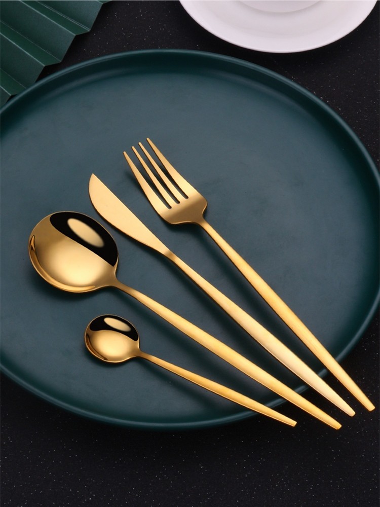 Spiegel Goldene Edelstahl Besteck Set Kinder Gabel Messer Suppe Dessert Eis Löffel Komplette Abendessen Geschirr Set Stäbchen