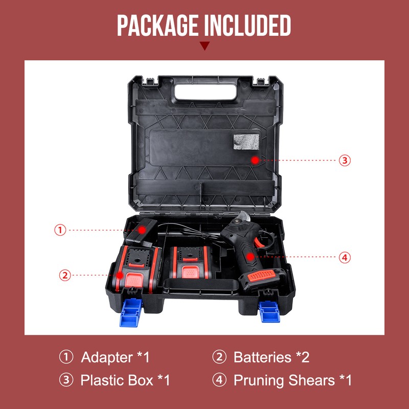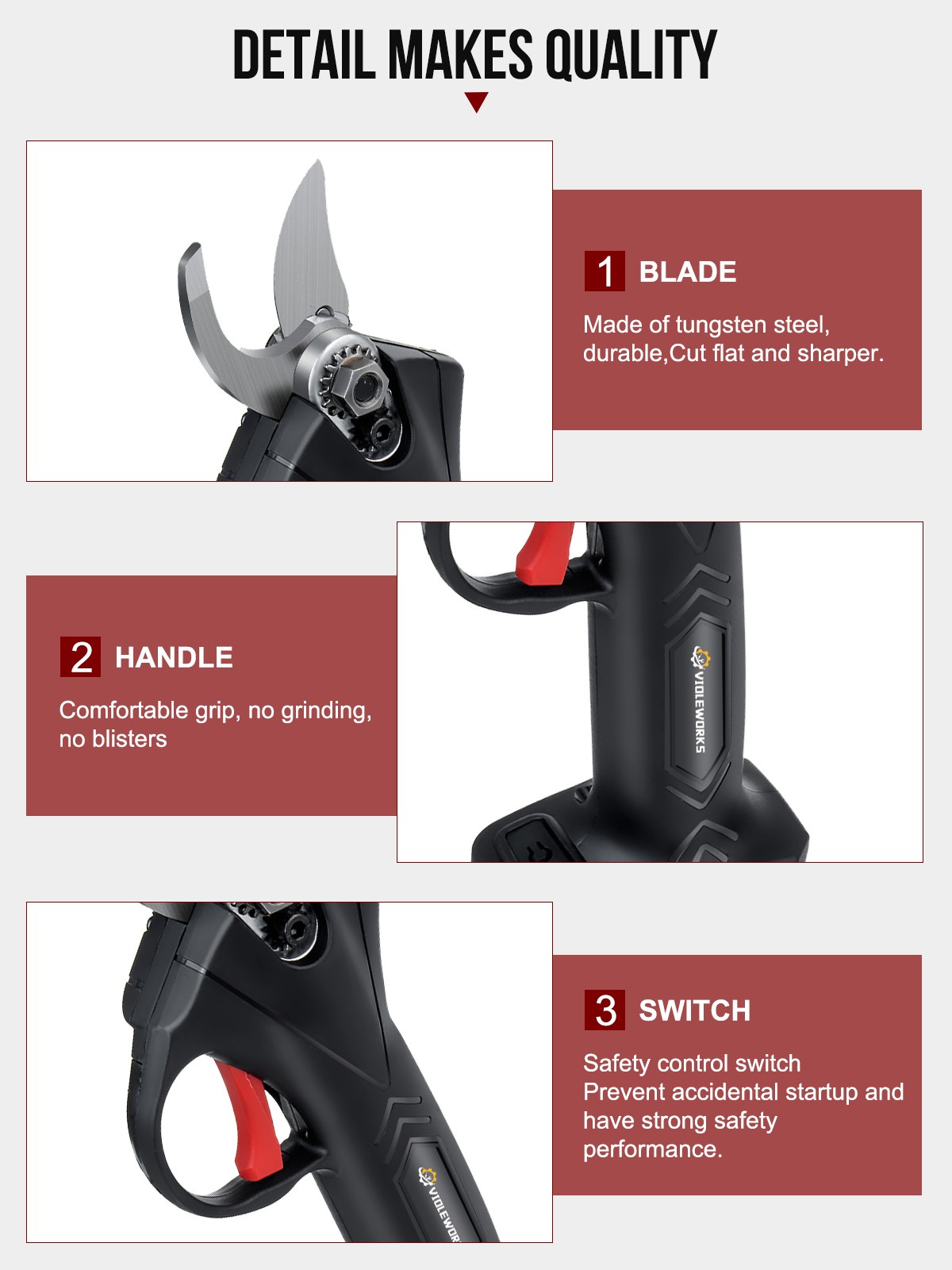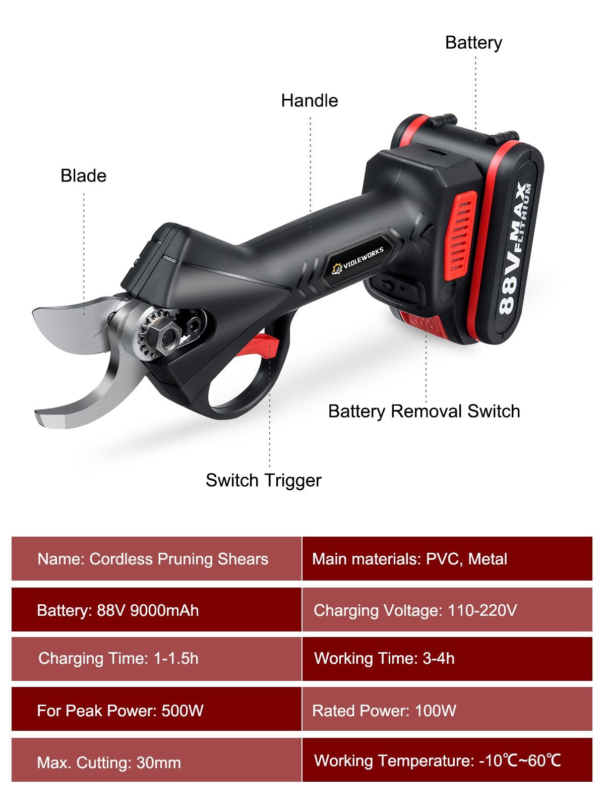 1. Cordless wiederaufladbare gartenschere für schneiden und trimmen niederlassungen in obstgärten, weinbergen.