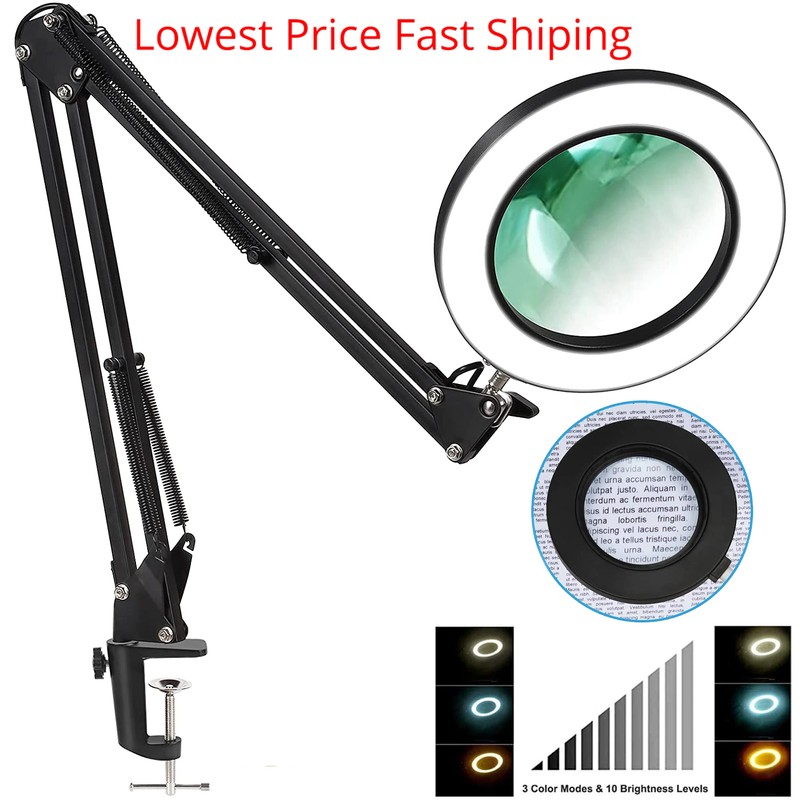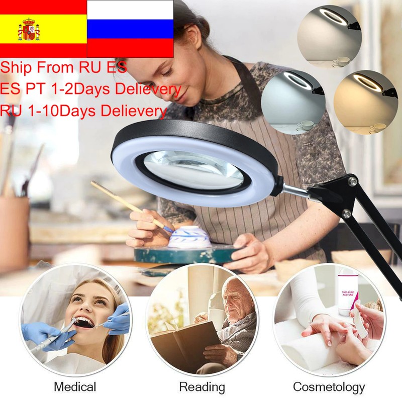 Lupe mit Licht und Stand,3 Farbe Modi Stufenlose Dimmen, einstellbare Swing Arm LED Lupe Schreibtisch Lampe 5-Dioptrien Glas Objektiv, für Schließen Arbeit, Reparatur, handwerk, Lesen, Nähen