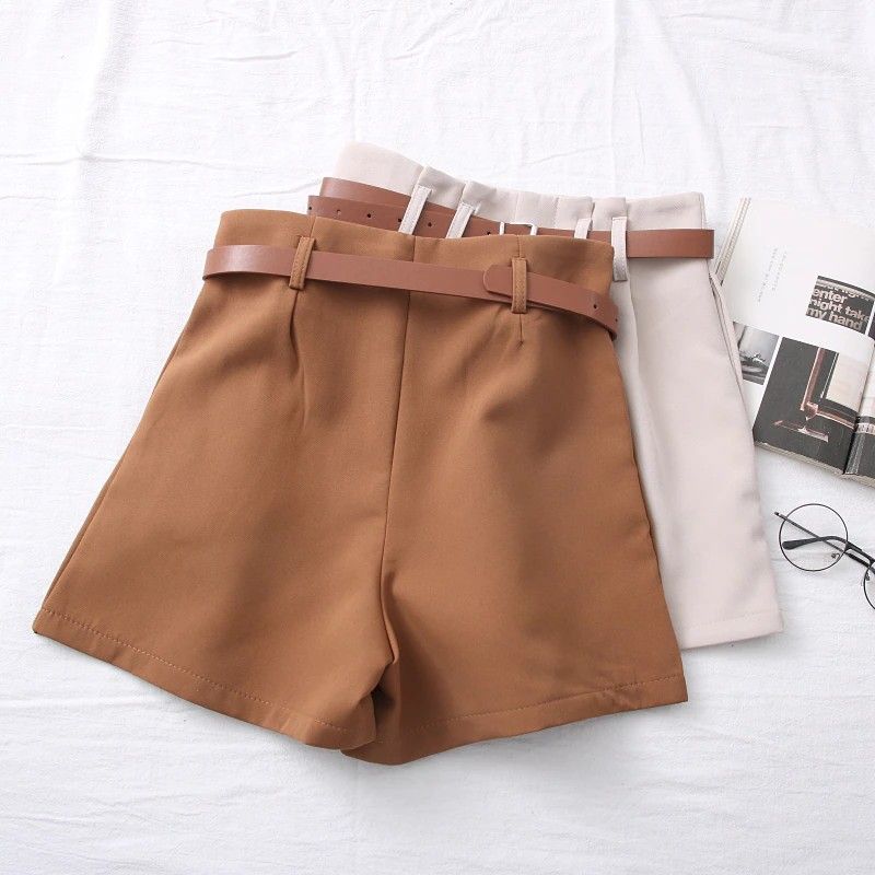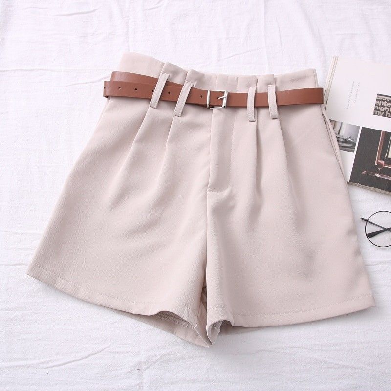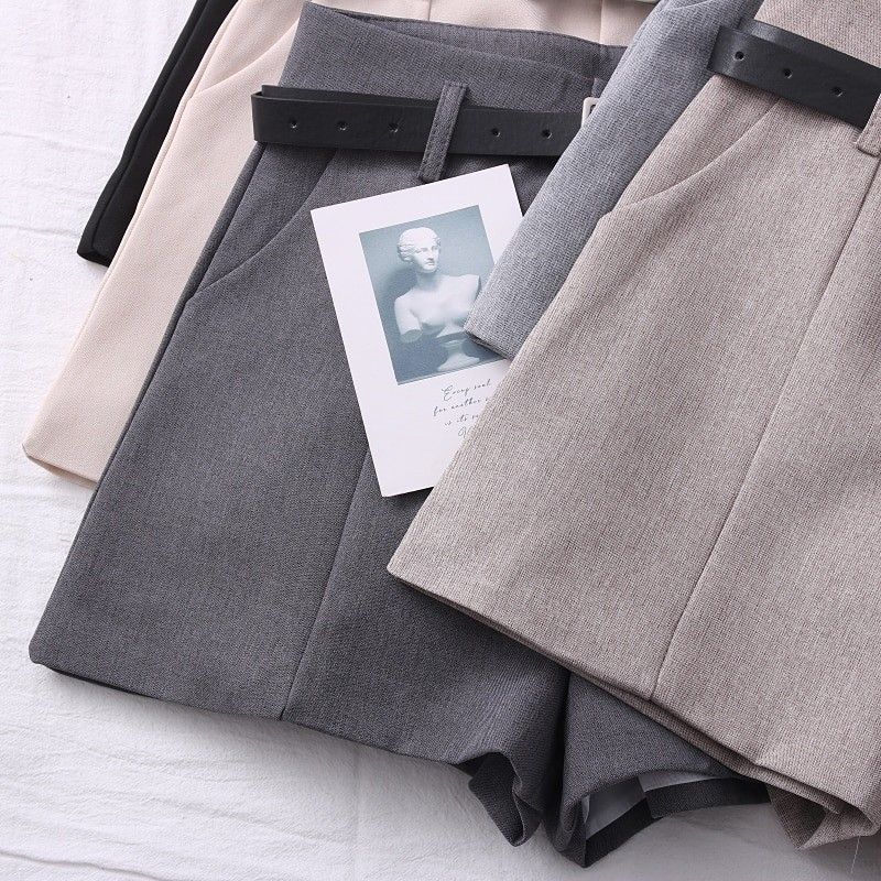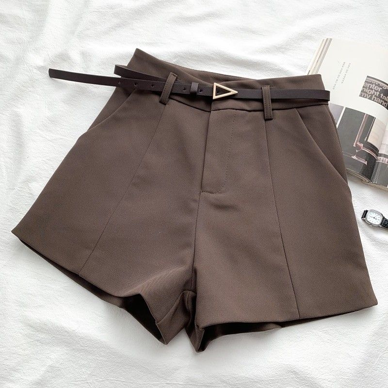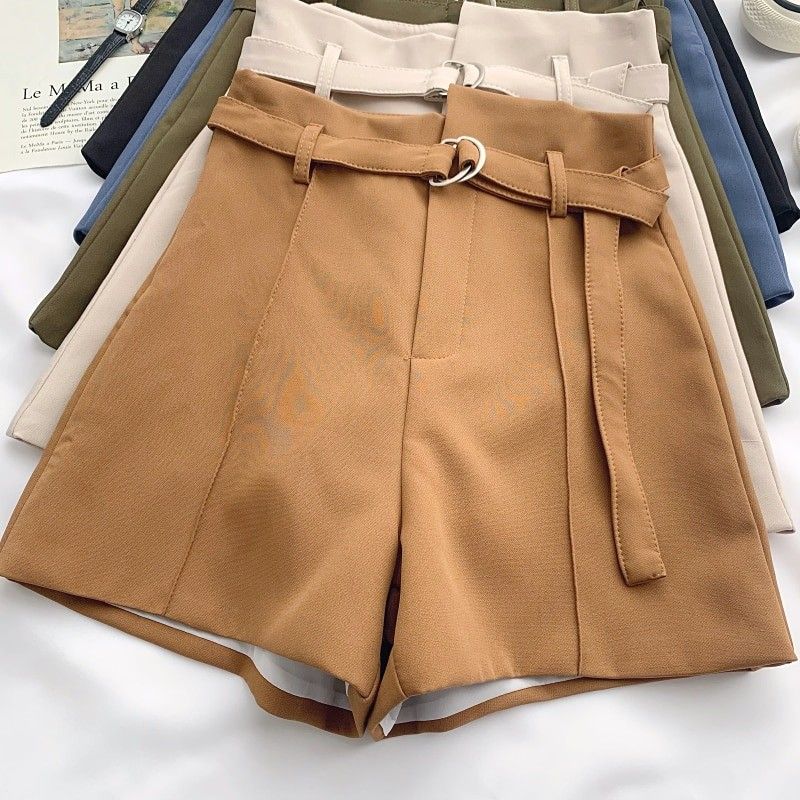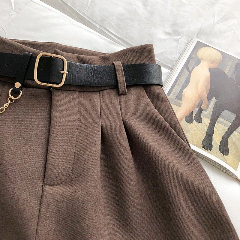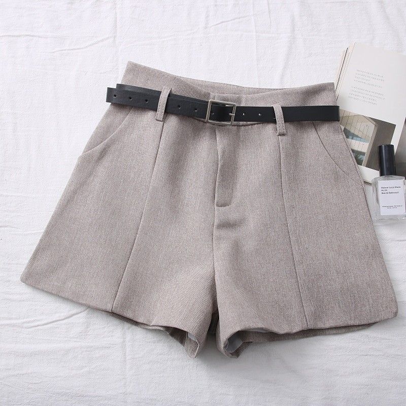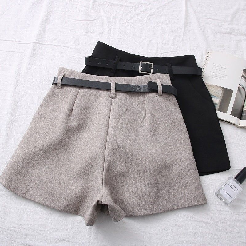 Neueste Neue Casual Komfortable Elegante wild Shorts Mit Gürtel Frauen Woolen Shorts Herbst Winter Schlank Breite Bein A-Line Shorts
