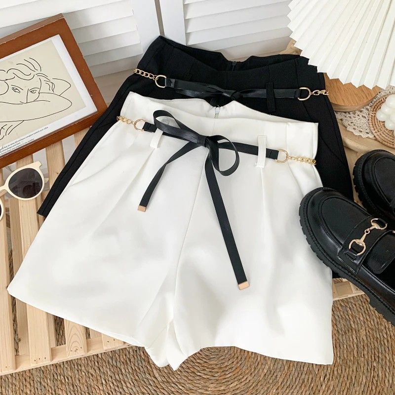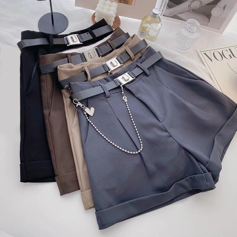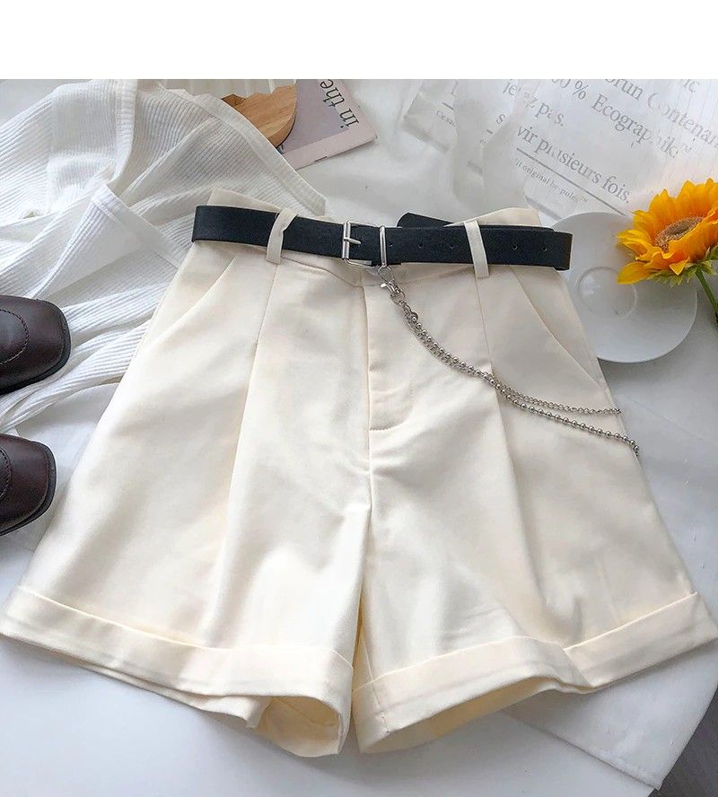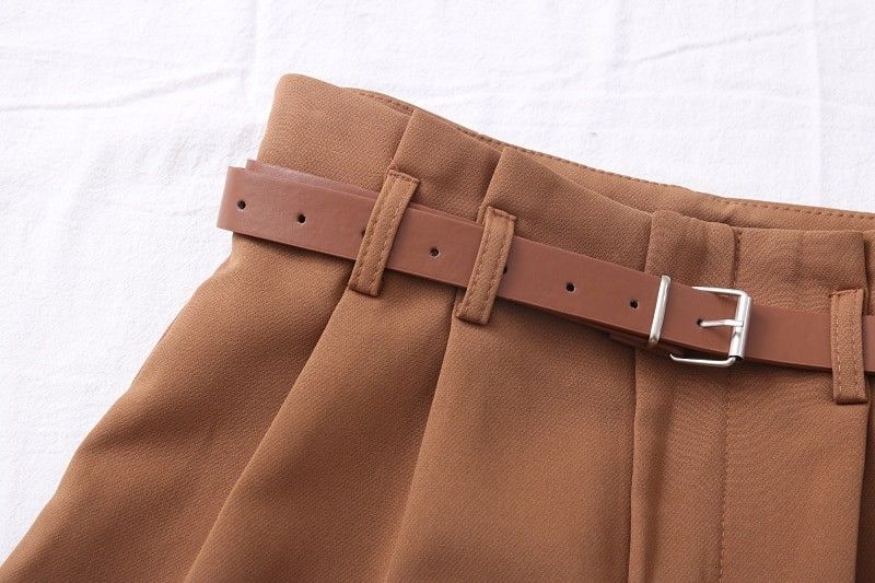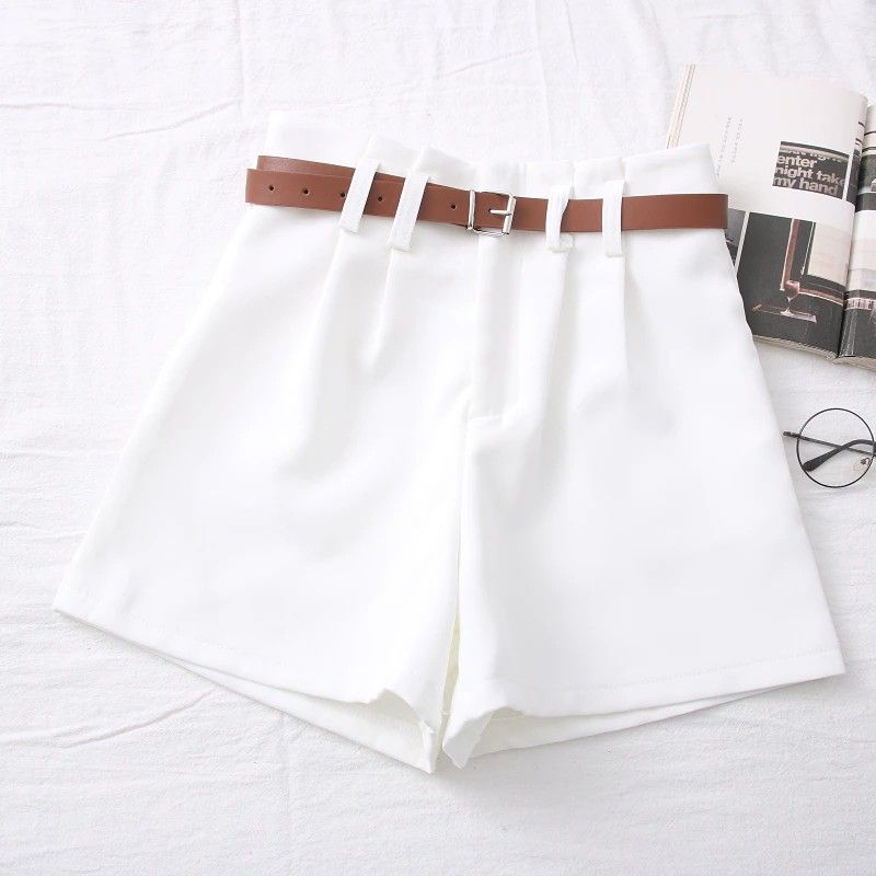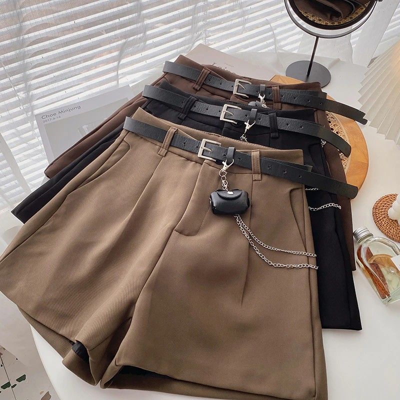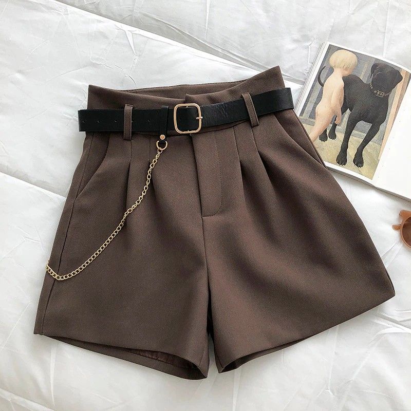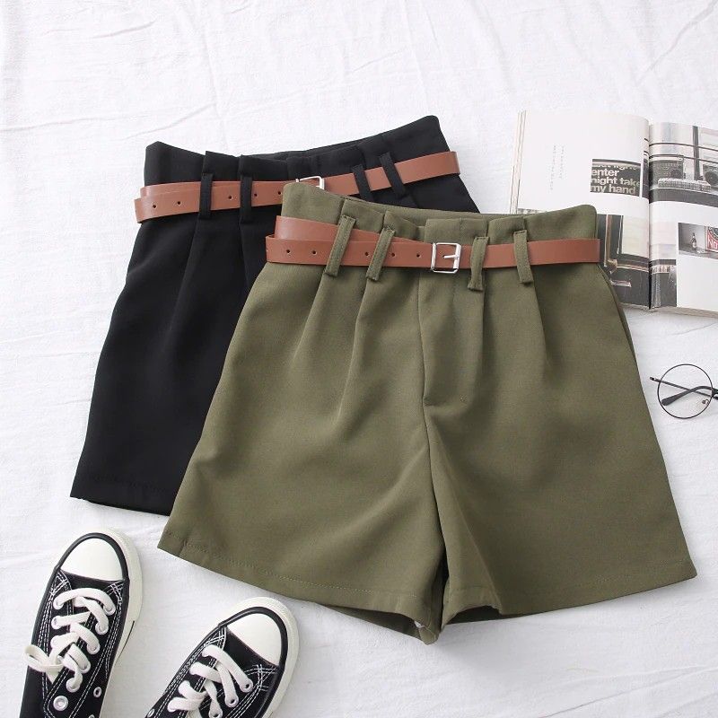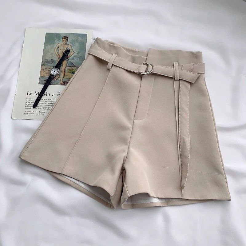 Neueste Neue Casual Komfortable Elegante wild Shorts Mit Gürtel Frauen Woolen Shorts Herbst Winter Schlank Breite Bein A-Line Shorts