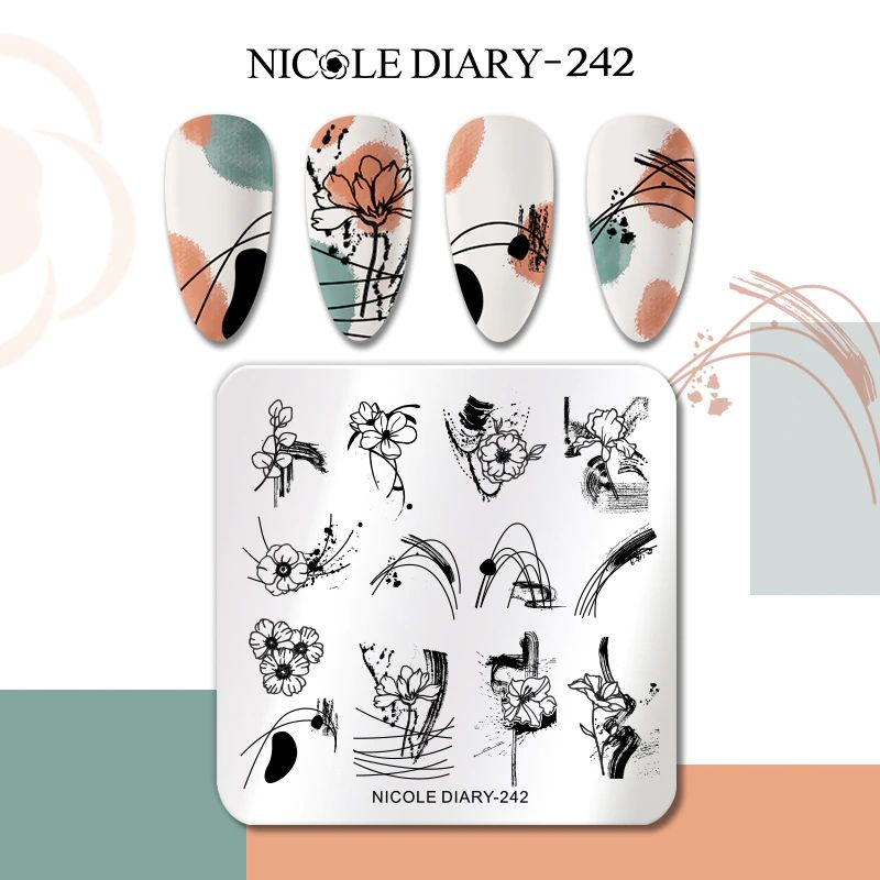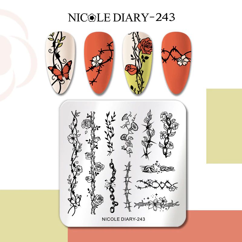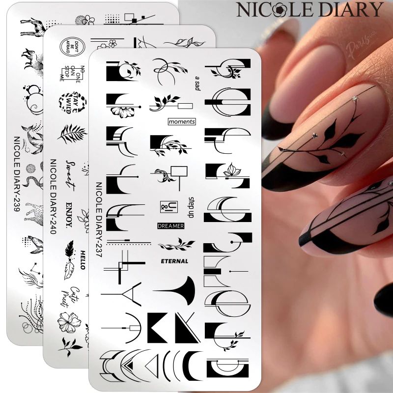 Nicole Tagebuch Blume Französisch Linie Muster Nagel Stanzen Platten Geometrische Blatt Floral Nail Art Stempel Schablone Druck Vorlage