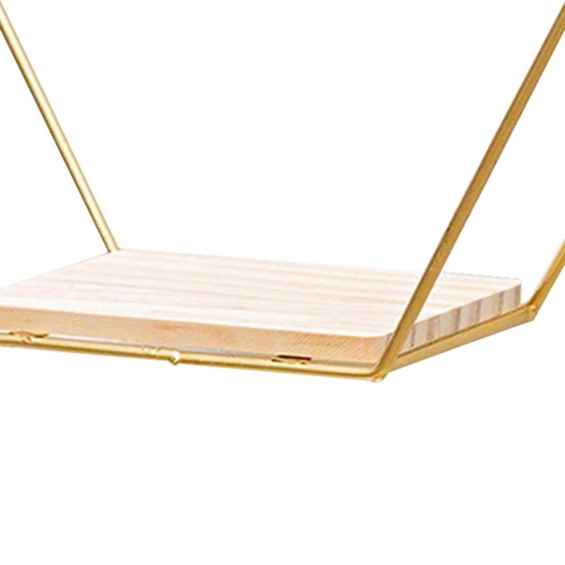 Aus eisen und holz material, diese sechseckigen regal ist langlebig und verschleiß beständig.