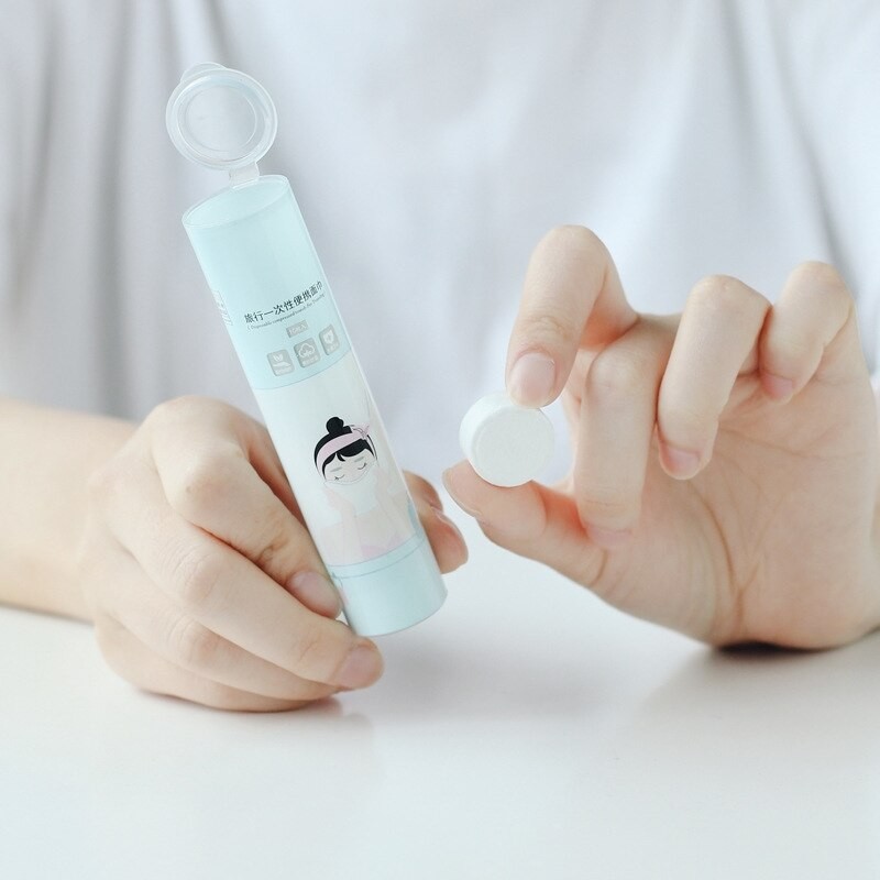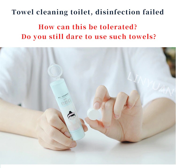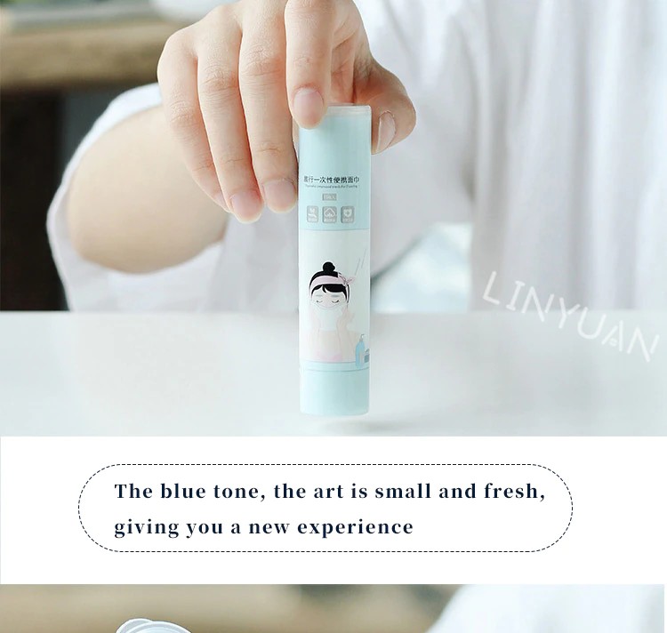Tragbare Reise Einweg Reinigung Handtuch Und Lagerung Box Druck Gesicht Handtuch Magie Tücher Papier Holz Faser Tissue 10 Kapseln