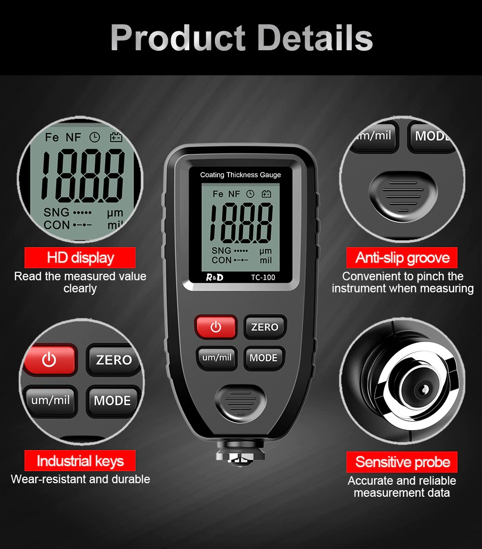 R&Amp;D Tc100 Beschichtung Dicke Gauge 0, 1 Micron/0-1300 Autolack Film Dicke Tester Meter Mess Fe/Nfe Russische Hand Farbe Werkzeug