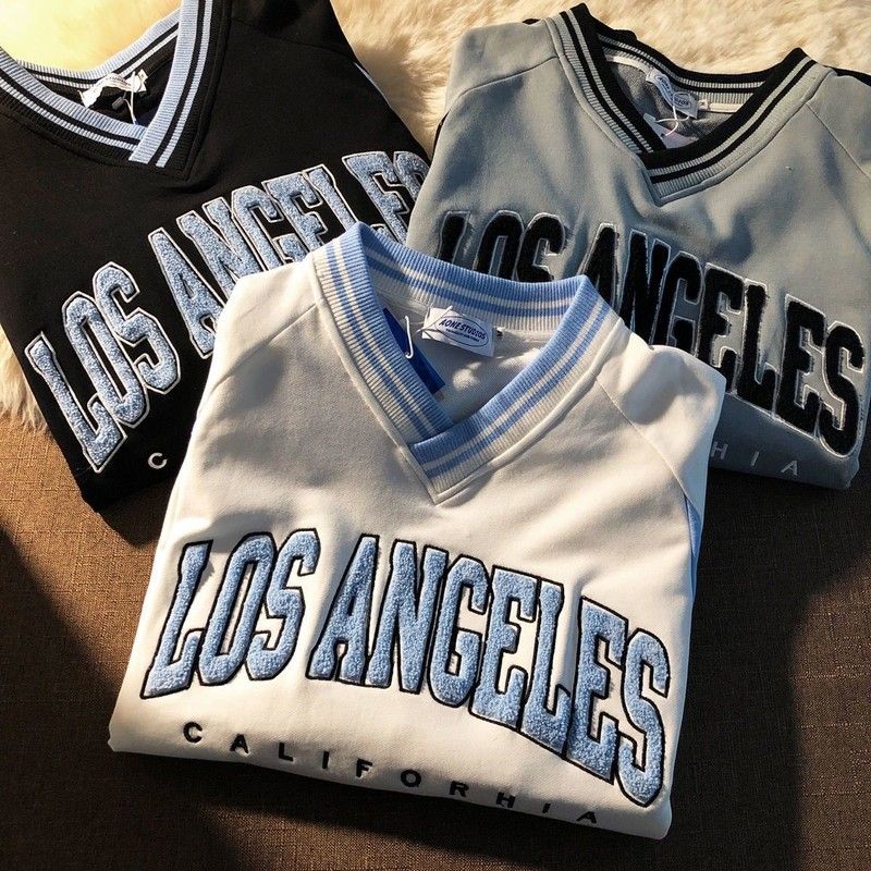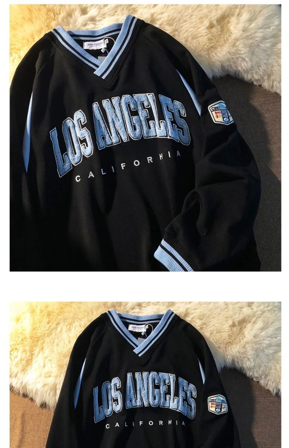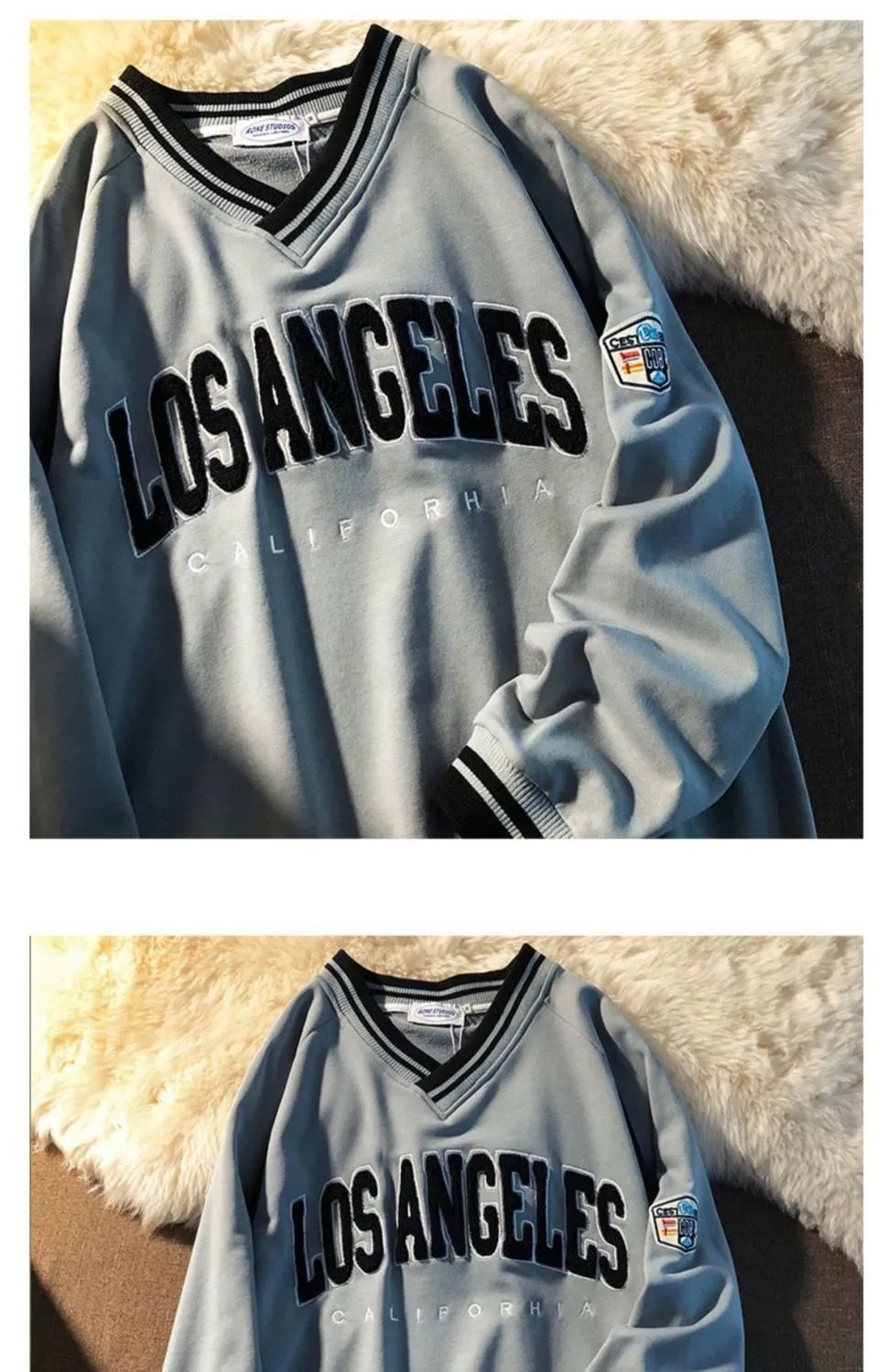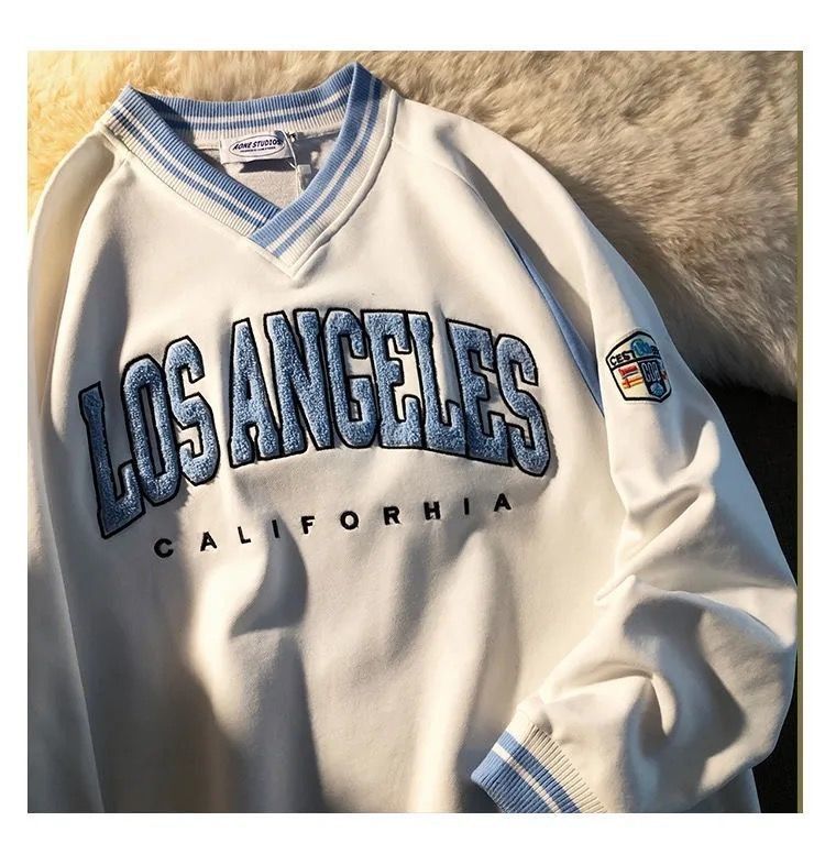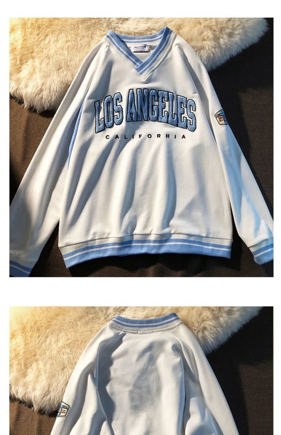 Retro Bestickt Sweatshirt Harajuku V-Ausschnitt Neueste Frühling Plus Größe Pullover Koreanischen Stil NS Liebhaber Brief Langen Ärmeln Hemd