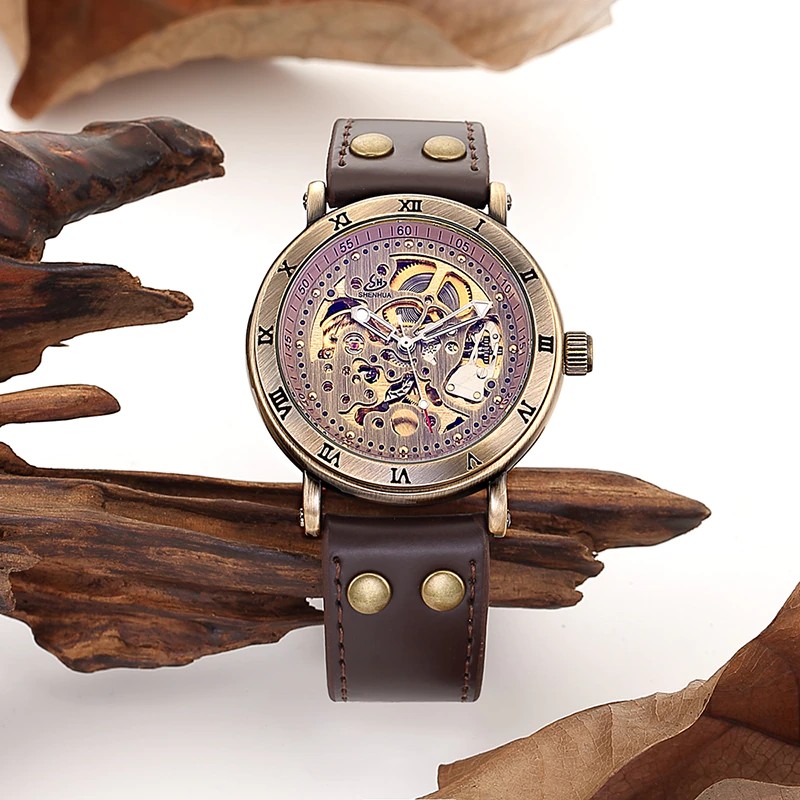 Retro Stil Männer Automatische Mechanische Uhr Skeleton Steampunk Echtem Leder Band Mens Selbst Wicklung Handgelenk Uhren Männer Reloj