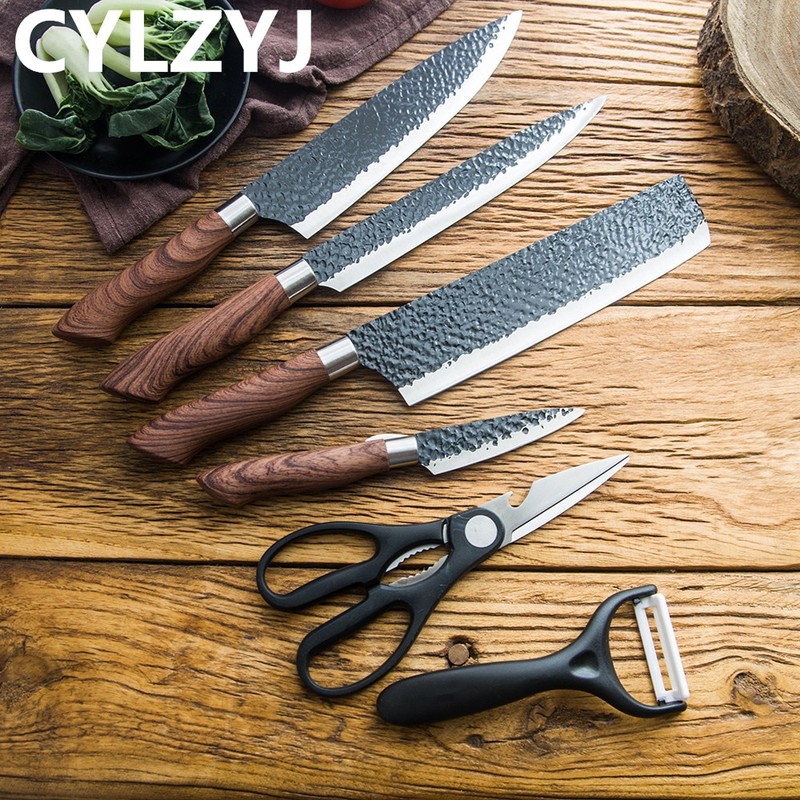 Edelstahl Küchenmesser Set Werkzeuge Beschläge Küchenmesser Schere Keramik Schäler Chef Slicer Nakiri Schäl Messer Geschenk Fall