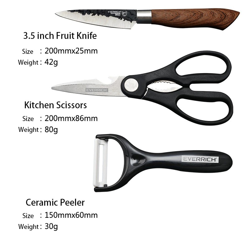 Extrem sharp: Jedes messer klinge ist aus geschmiedet high carbon stahl. Die klingen sind dann hand-sharp ened und schließlich satin fertigen-, die bietet ein hervorragend sharp und effiziente rand, dass wird seine sharp ness für lange zeiträume, auch mit schwere täglichen gebrauch.
