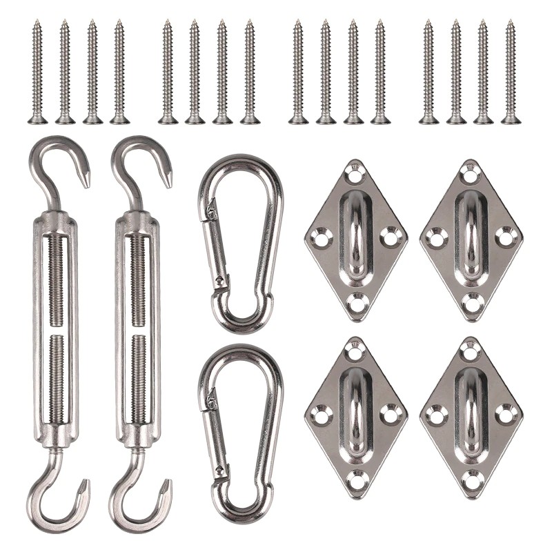 Sonne Sonnensegel Baldachin Zubehör 24 stücke/set 304 Edelstahl Hardware Kit Spannschloss Pad Auge Karabiner Clip Haken schrauben Silber