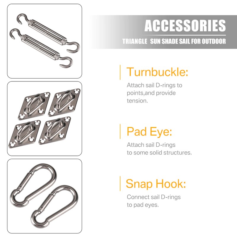 * Hardware kits sind empfohlen zu installieren ein schatten segel zu jede struktur, baum oder pole; einfach zu verwenden, wenn oder wo immer